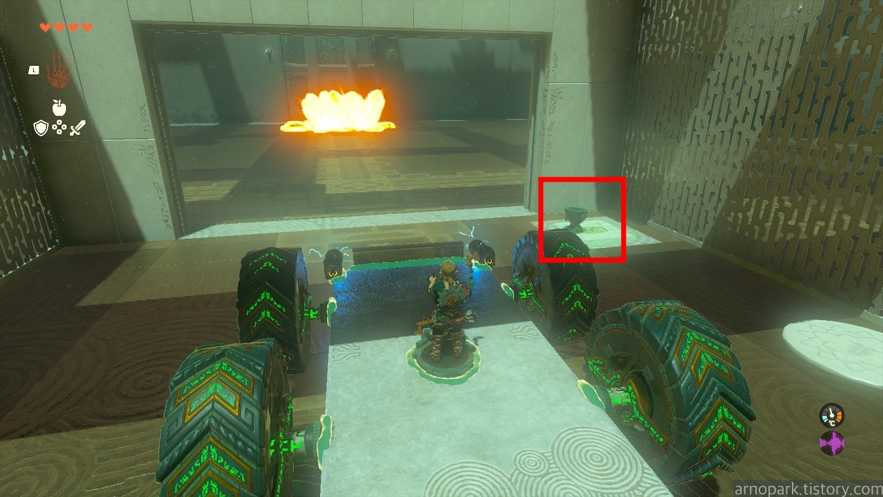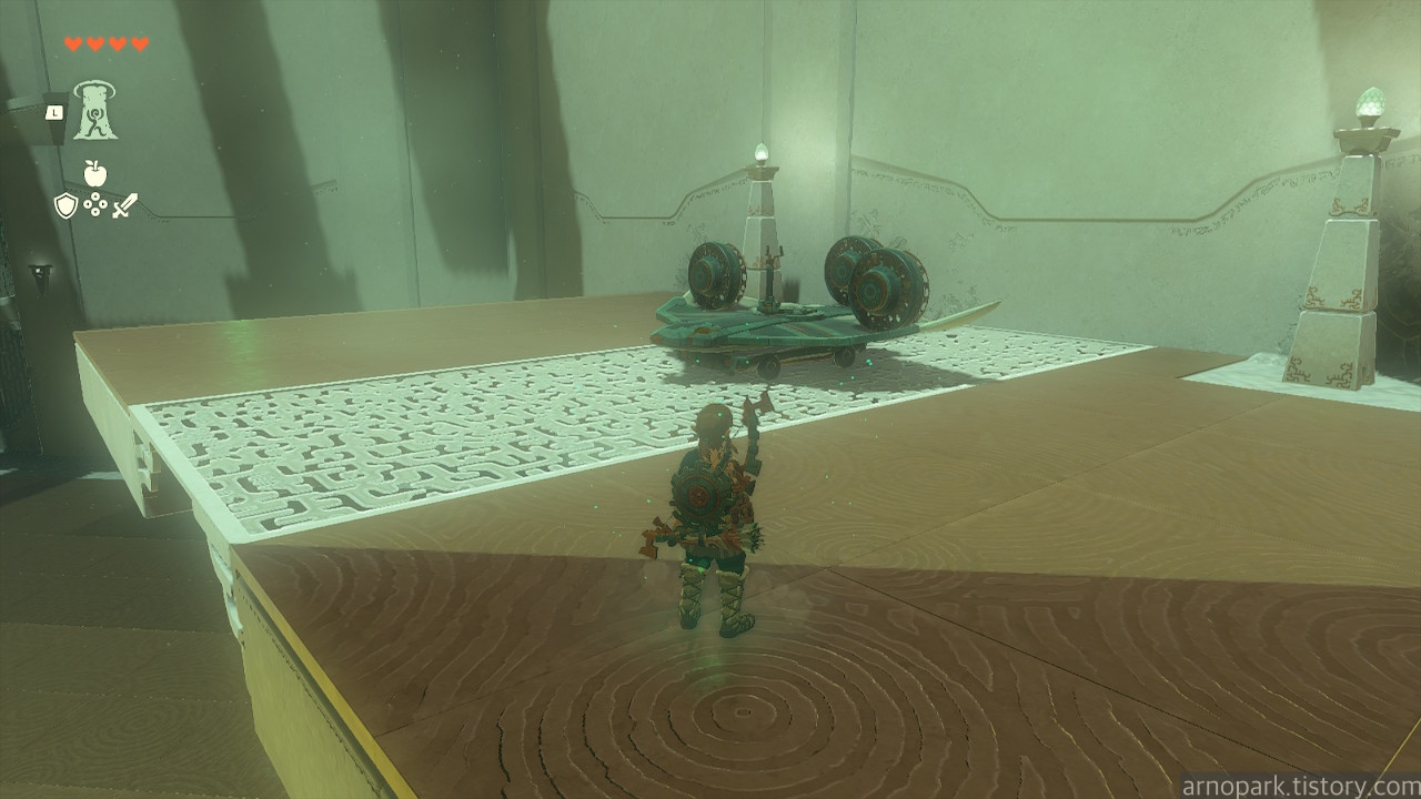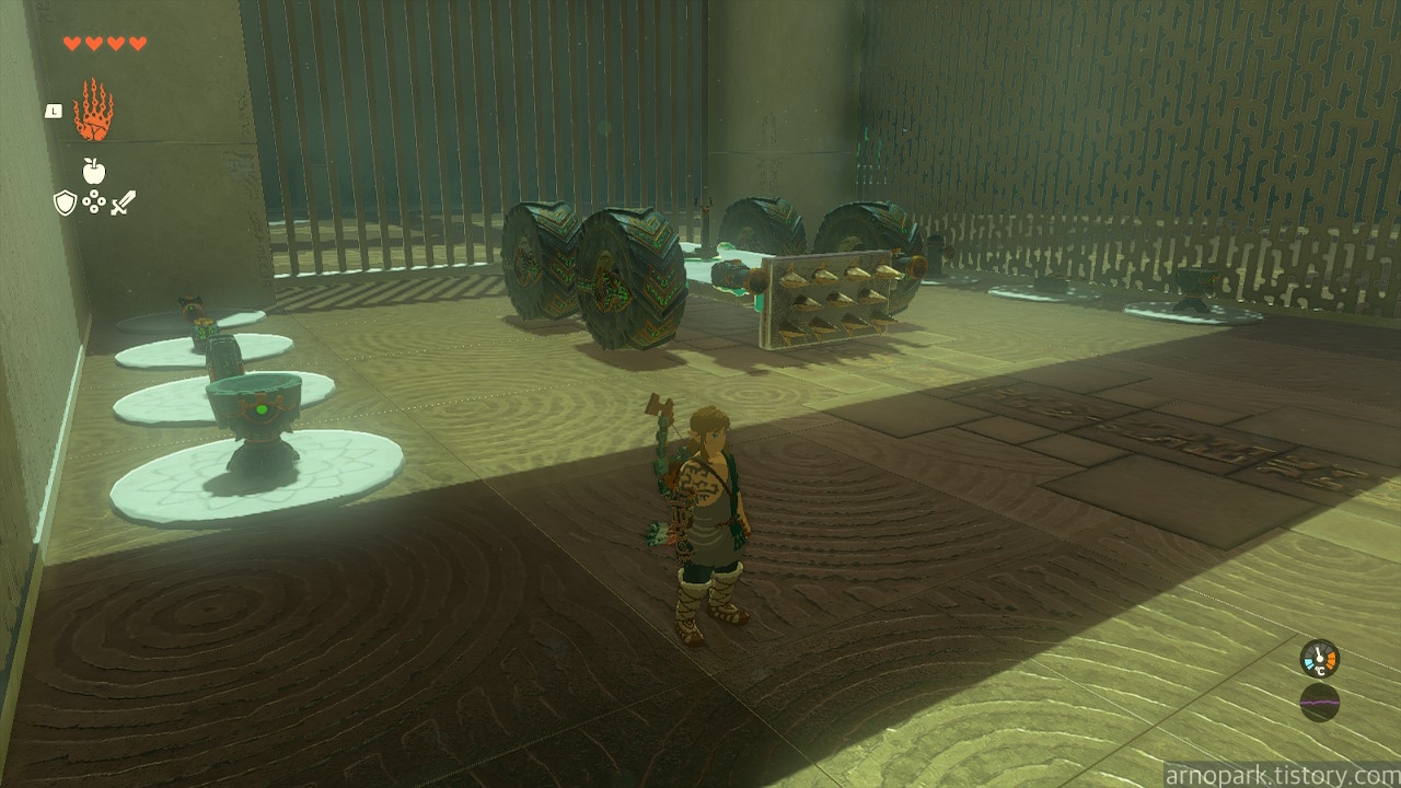 소지품 없이, 사당 내부에 구비된 조나우 기어 장치들을 이용해서, 골렘들을 잡는 것이 핵심 과제입니다.