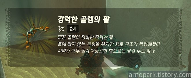 상자 안에는 강력한 골렘의 활이 있습니다.