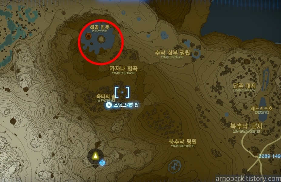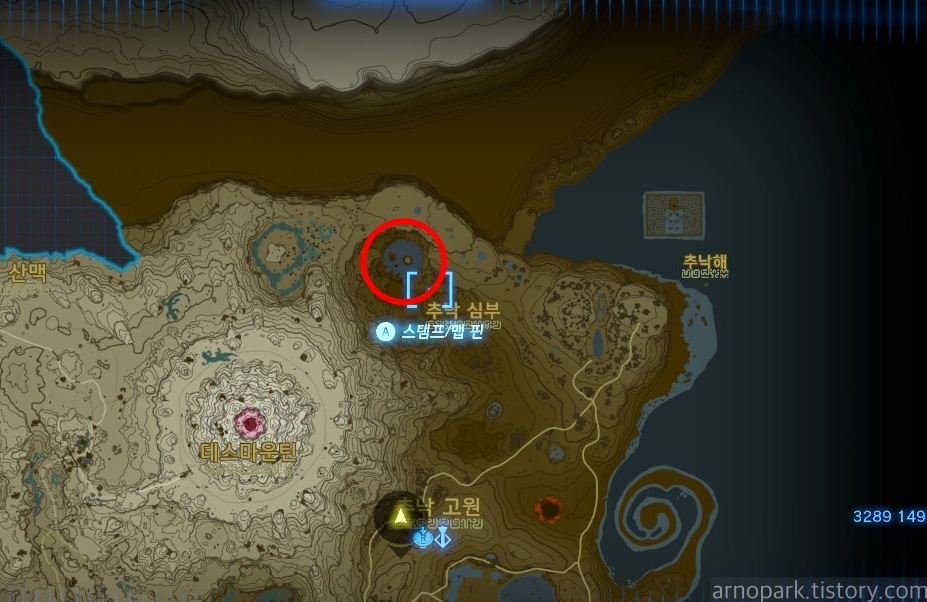 추낙 심부 쪽을 살펴보면, 동그란 호수가 있습니다.