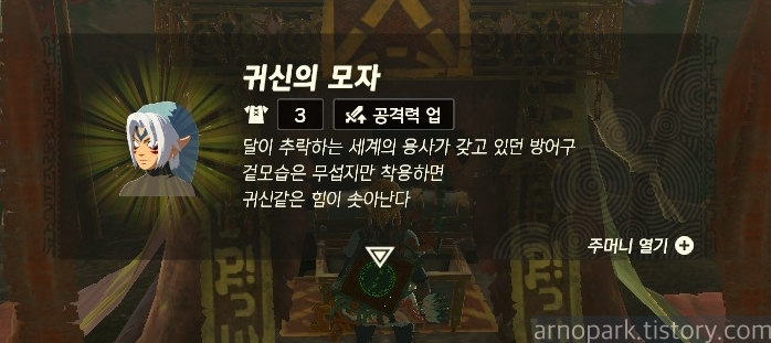 귀신링크의 강렬한 외관과 공격력 업이라는 좋은 효과를 지닌 방어구이니, 꼭 얻으셨으면 좋겠습니다.