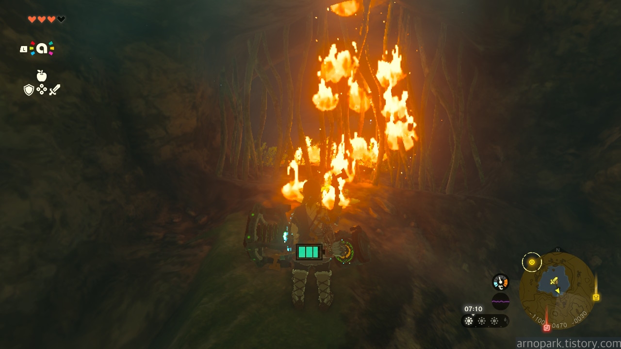 이 덩쿨도 불로 태우고, 안으로 진입합니다.