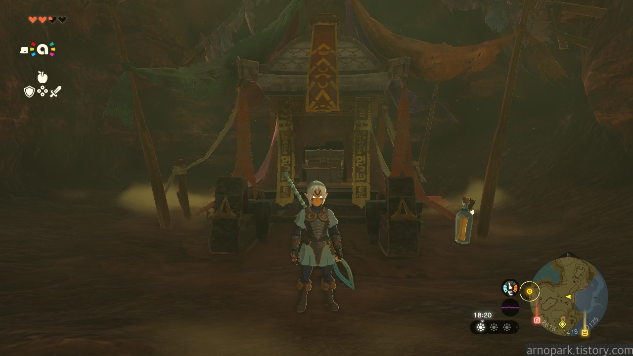 추낙 요새 옛터 정상의 동굴을 발견하고, 바로 제단과 상자를 발견할 수 있습니다.