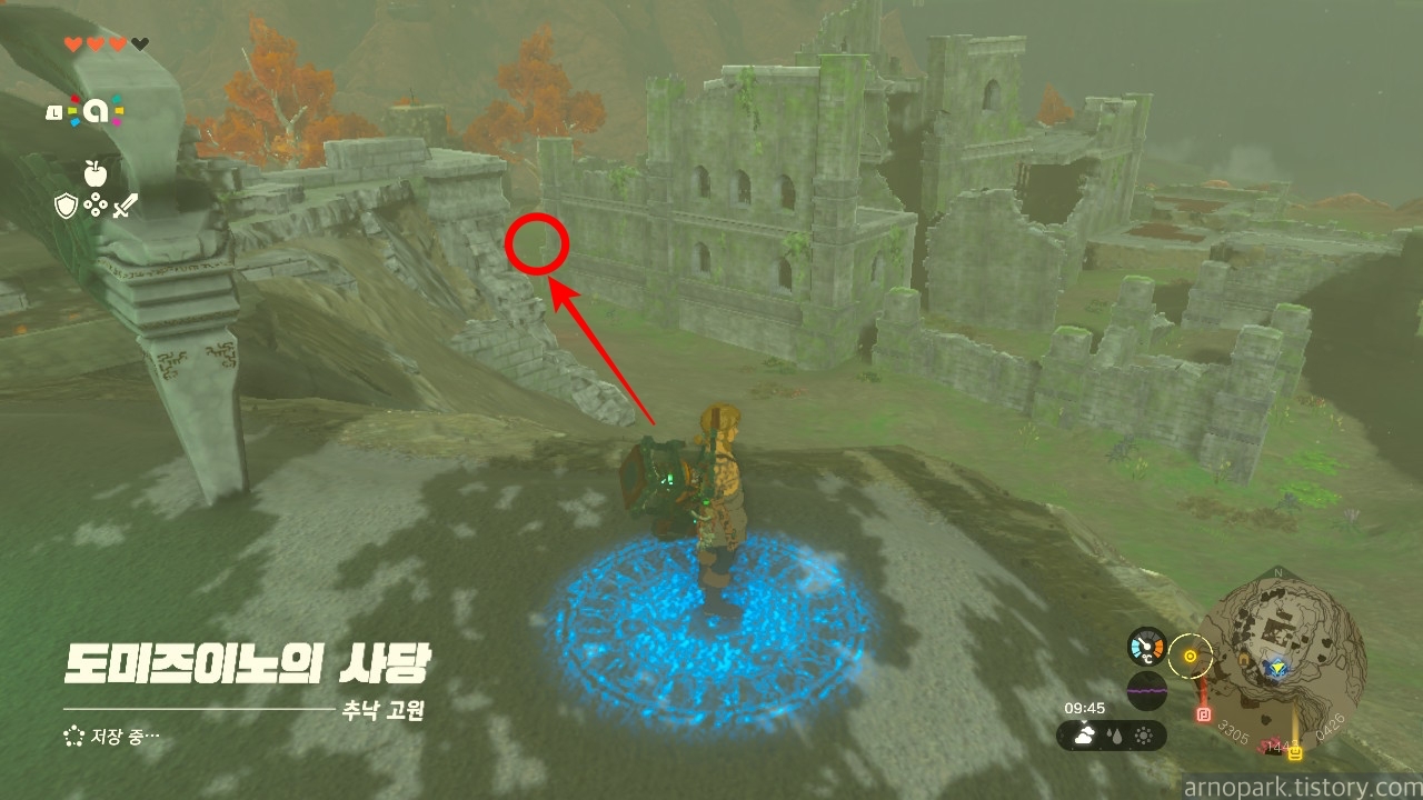 돌 무더기를 전부 부시고 들어가면, 사진처럼 맵 중앙의 언덕 위에 제단을 발견할 수 있습니다.