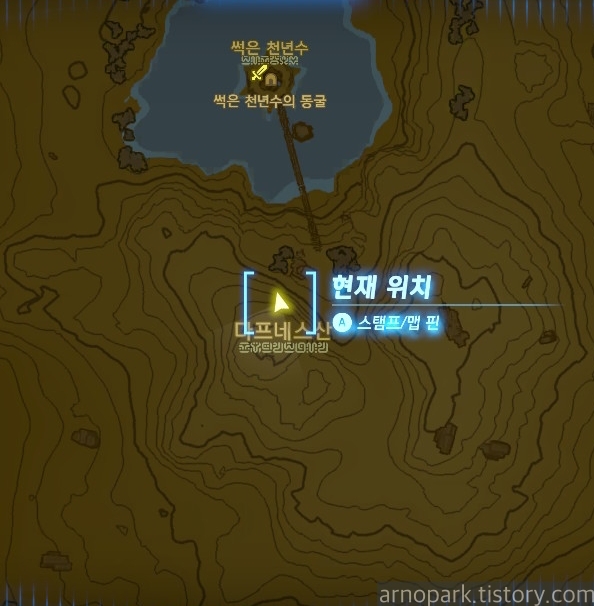 썩은 천년수의 동굴의 바닥에는 물이 있습니다. 물에 착지를 하고 나면,