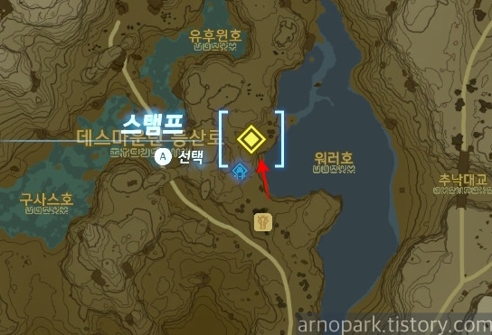 추천하는 루트는 울리산 조망대에서 데스마운틴을 거친 후, 해골 연못 중앙에 진입하는 것입니다.