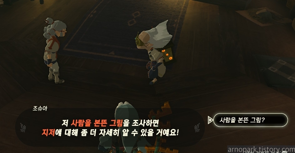 조슈아에게 말을 걸면, 지저에 대한 이야기를 합니다.