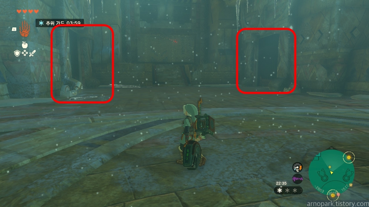 신전 북쪽 건물로 다가가면, 양 옆에 입구를 발견할 수 있습니다.