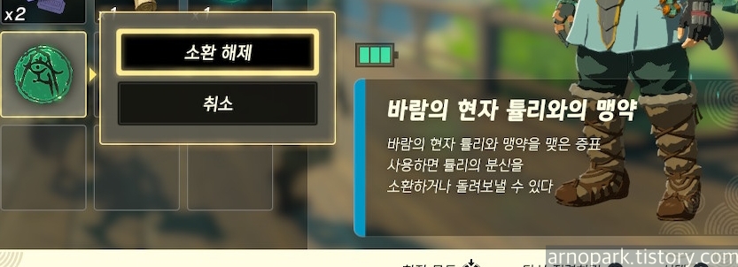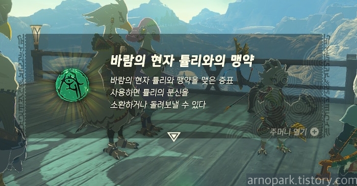 메인 챌린지 - 리토의 마을의 튤리 퀘스트가 클리어되고, '바람의 현자 튤리와의 맹약' 아이템을 얻습니다.