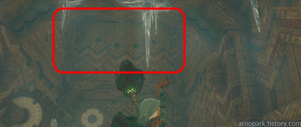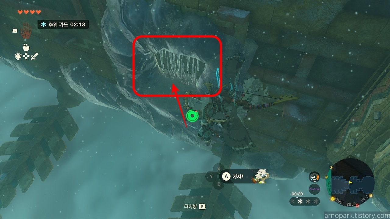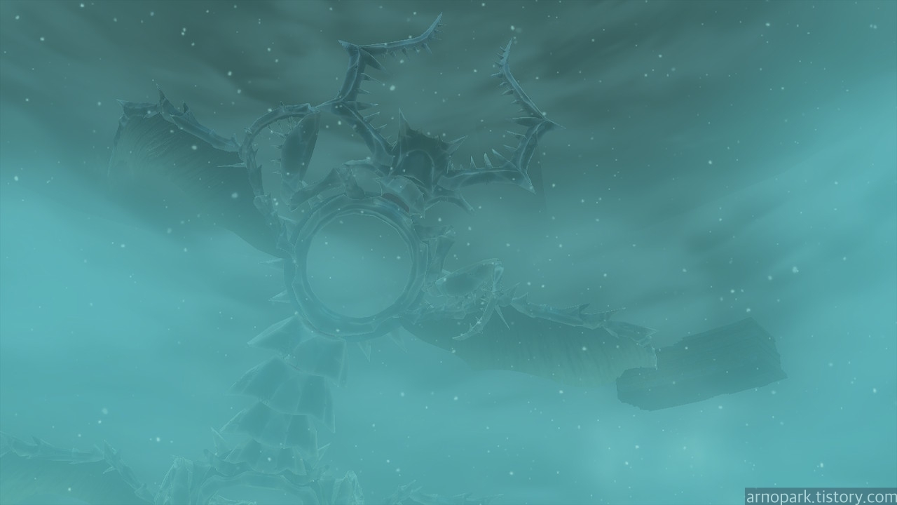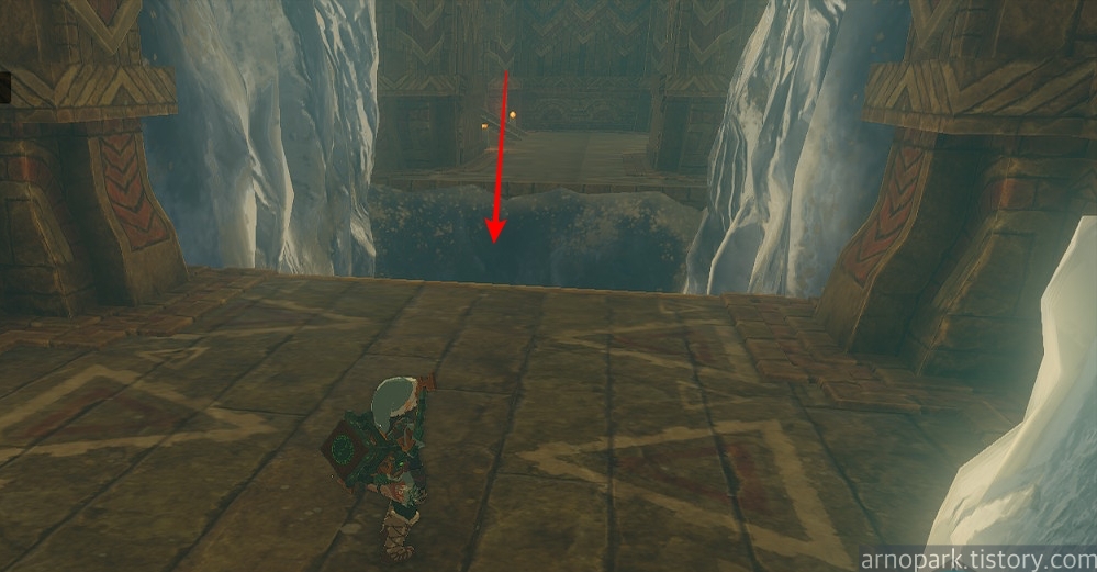 해당 위치로 간 후, 갑판에서 뛰어내리면, 고드름으로 막힌 입구를 발견할 수 있습니다.