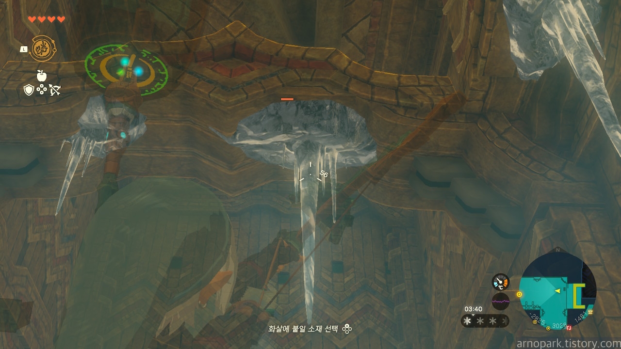고드름을 부시고 내부로 진입합니다.