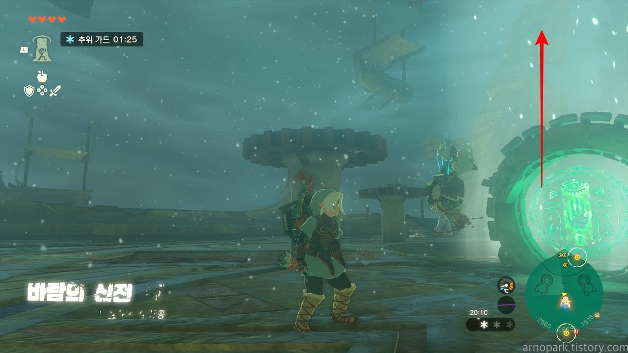 자물쇠를 모두 해제했으니, 바람의 신전 입구로 워프를 탑니다.