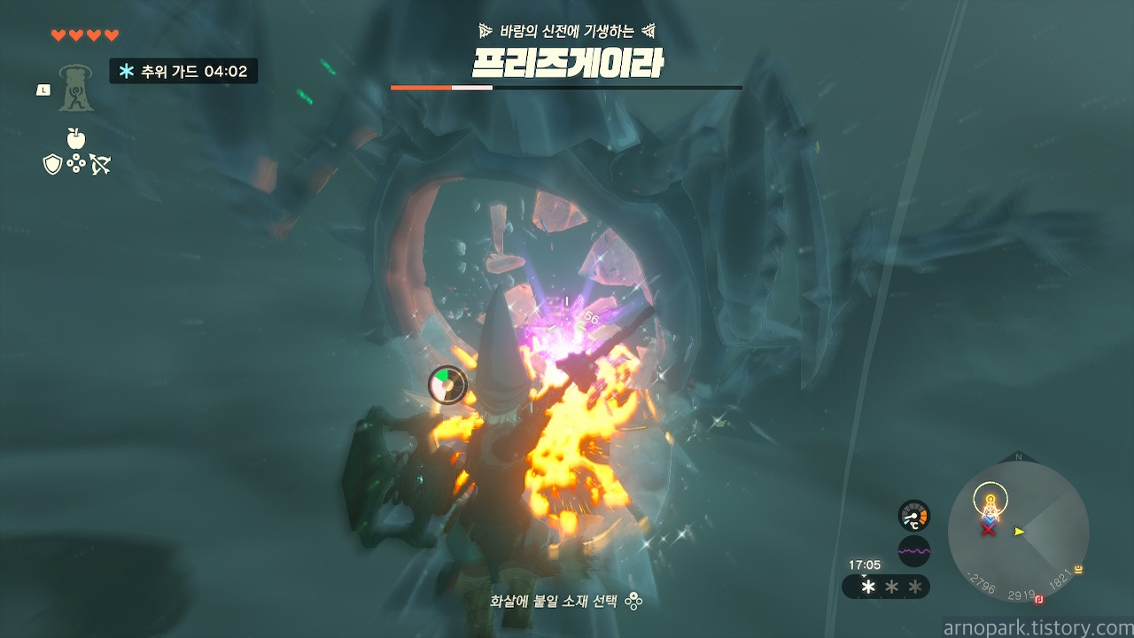약점을 부시고 프리즈게이라가 돌진 패턴을 한 후에, 잠깐 약점이 전체적으로 드러나는 순간이 있습니다.