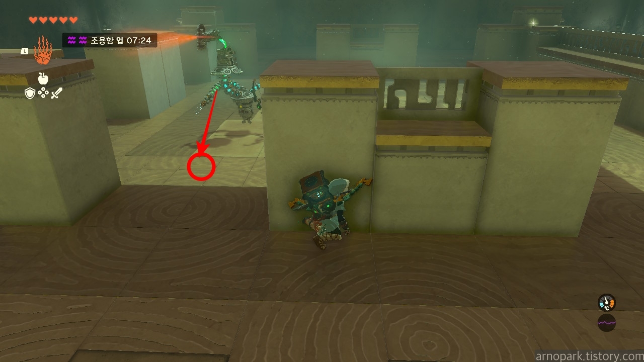 들어가면 유적 골렘에게 들키지 않고, 습격을 해야 합니다.