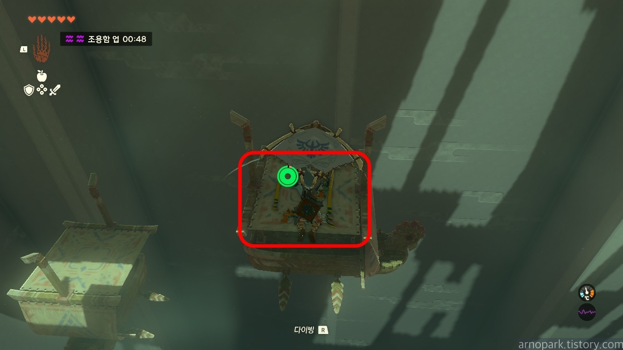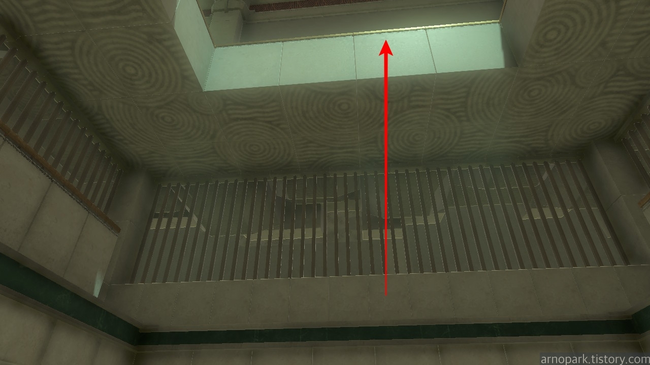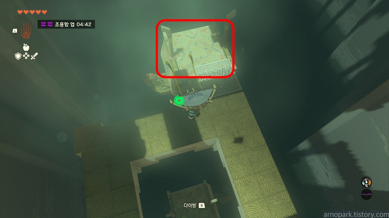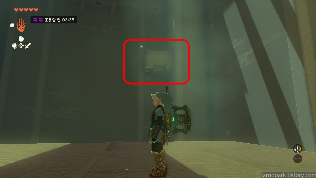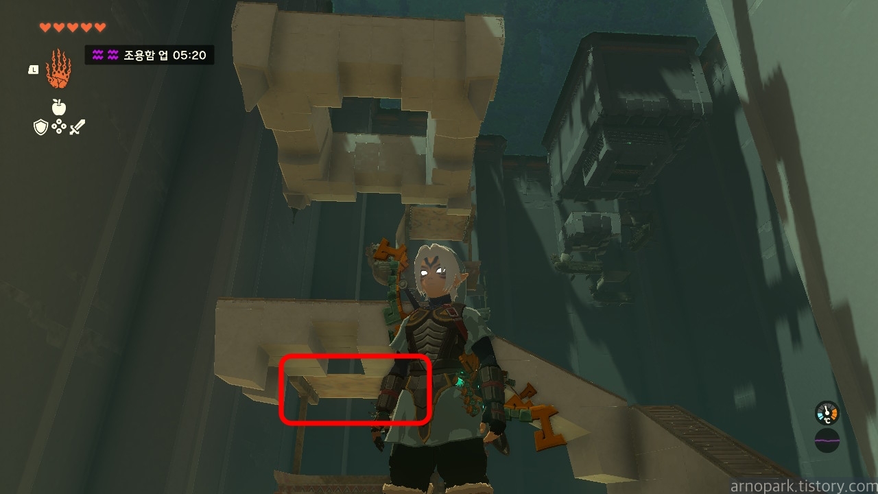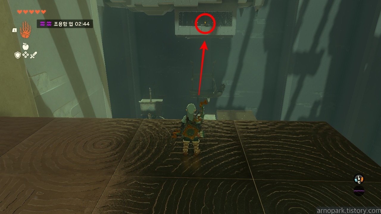 도착한 후 주위를 둘러보면, 위쪽에 수상한 구역이 하나 보입니다.