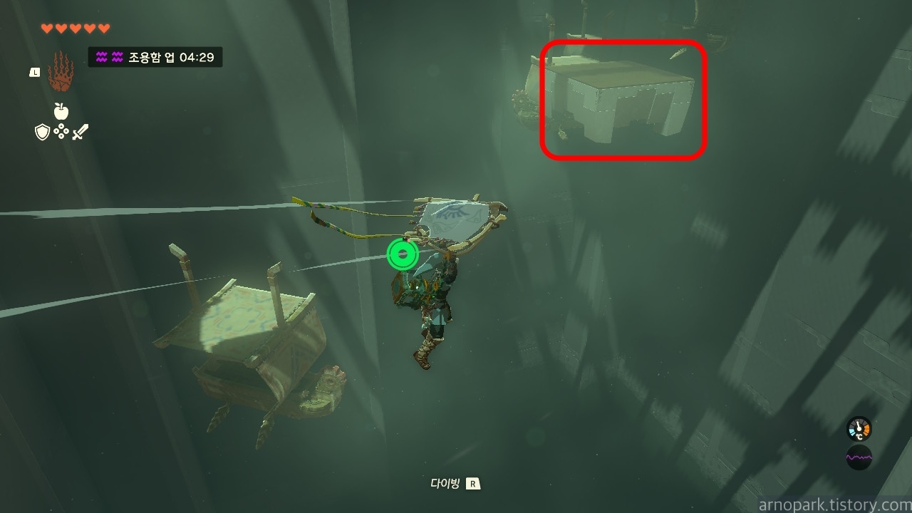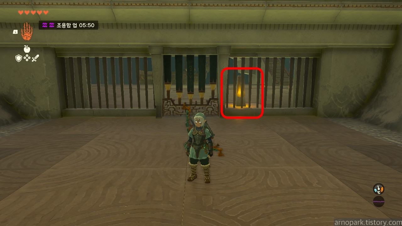 상자를 파밍한 곳에서 앞을 내다보면, 아까 사당 처음에 보았던 스위치가 보입니다.