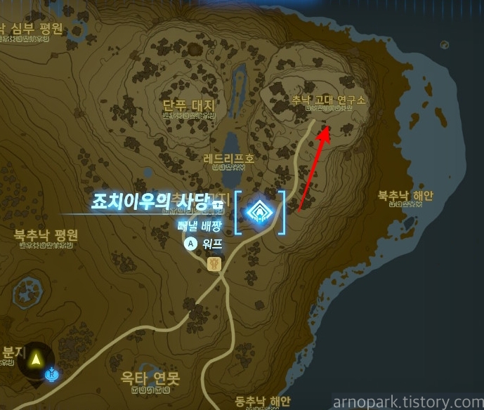 죠치이우의 사당 워프를 타면 쉽게 갈 수 있습니다.