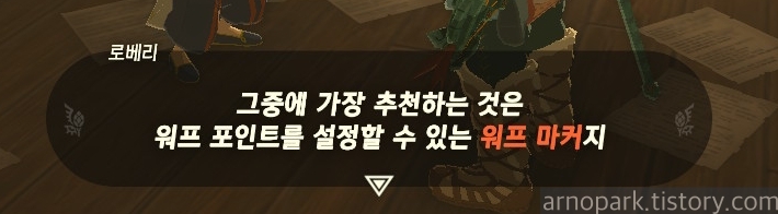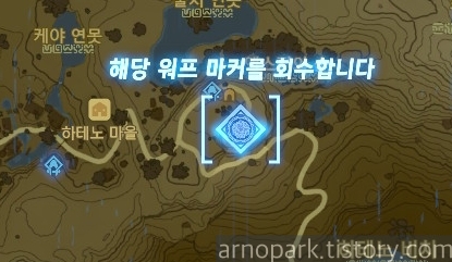 '두기'를 누르면, 링크가 있는 곳에 워프 마커가 설치됩니다.