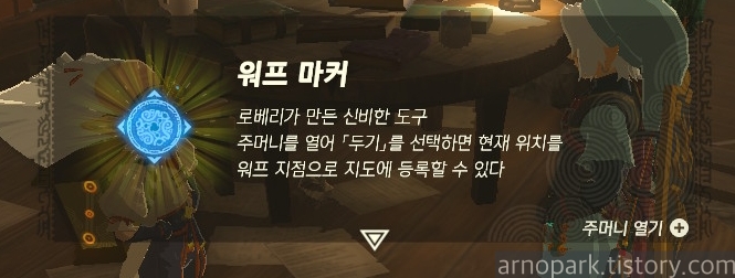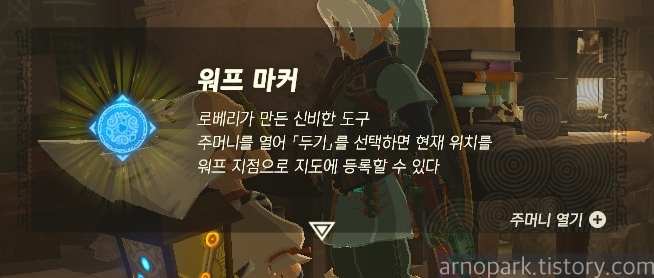 인벤토리에 워프 마커가 있습니다.
