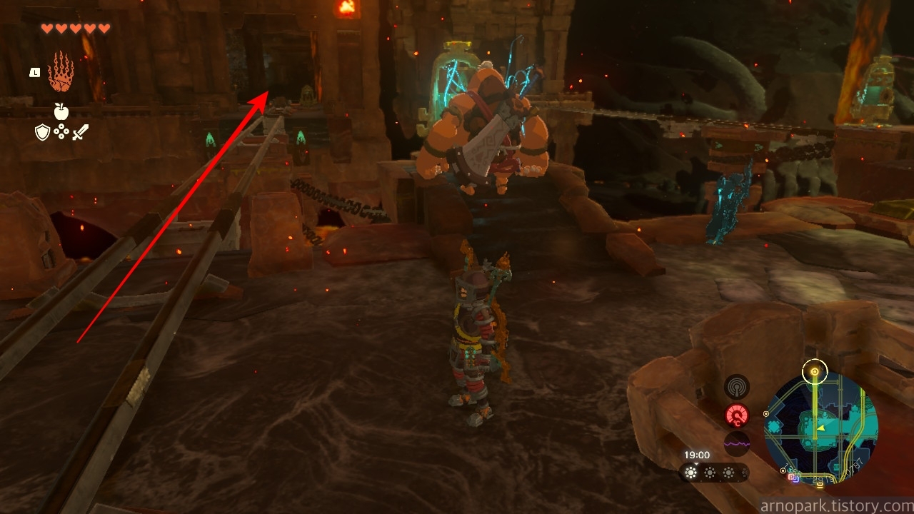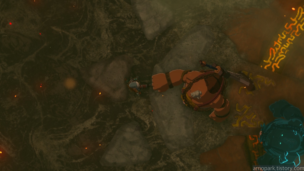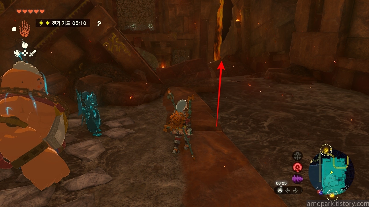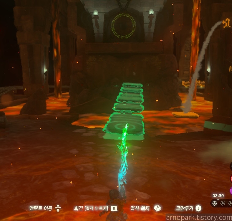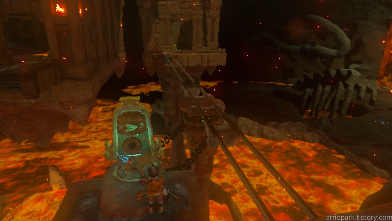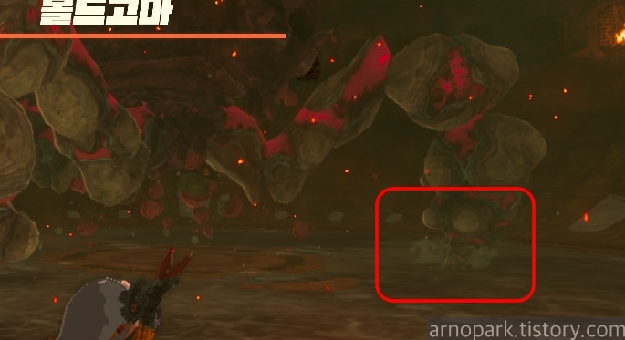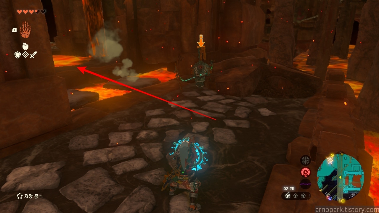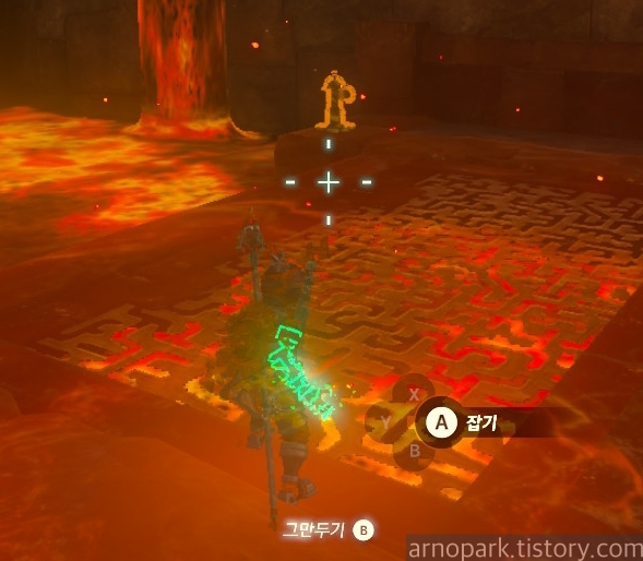 유적 골렘을 잡고, 왼쪽 용암 길로 갑니다.