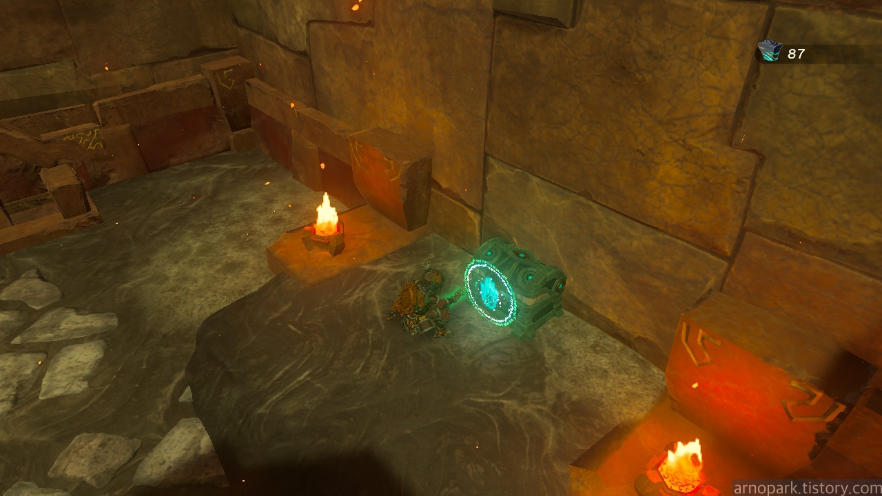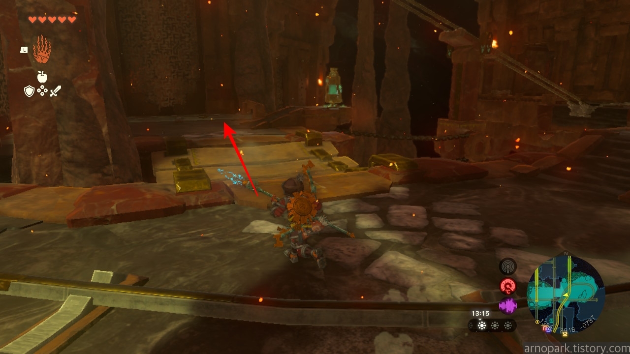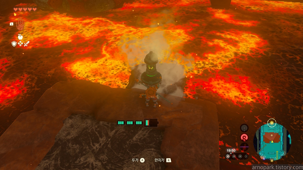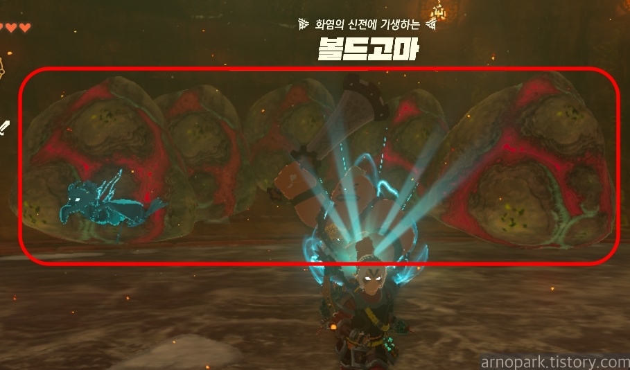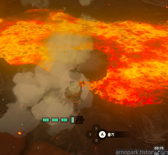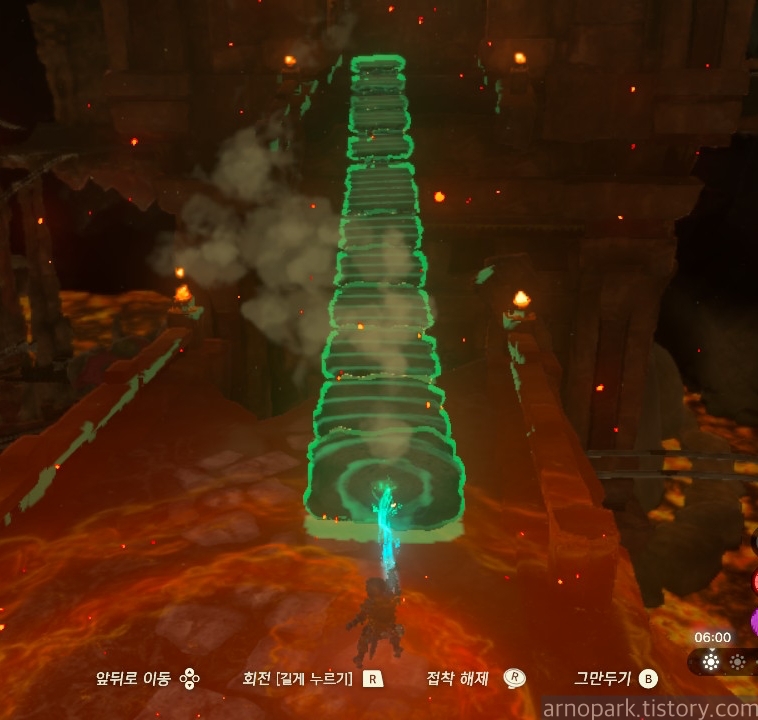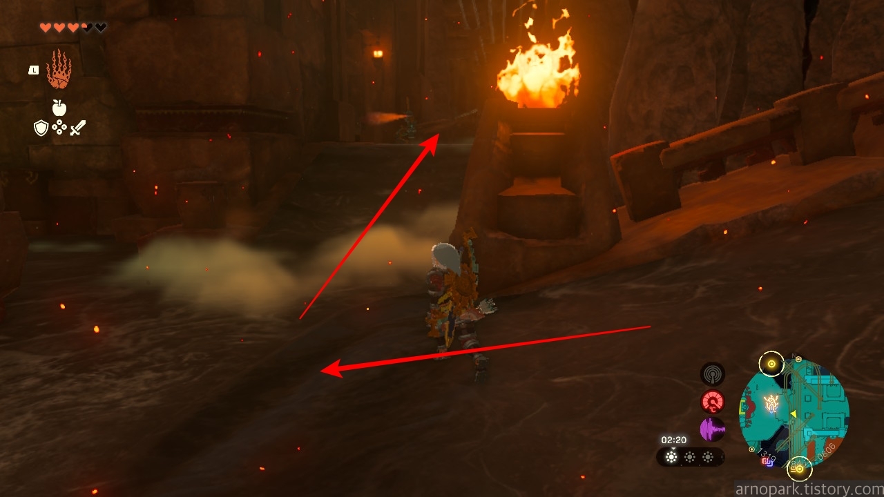 유적 골렘을 잡고, 왼쪽 용암 길로 갑니다.