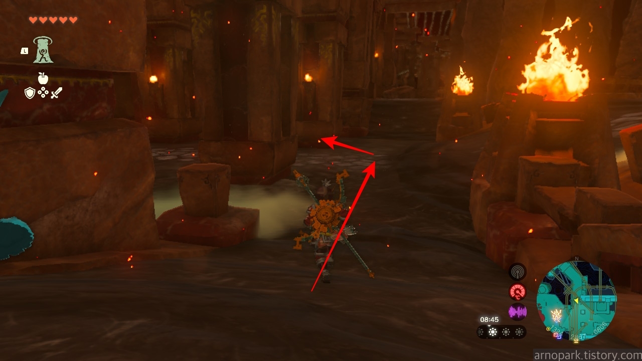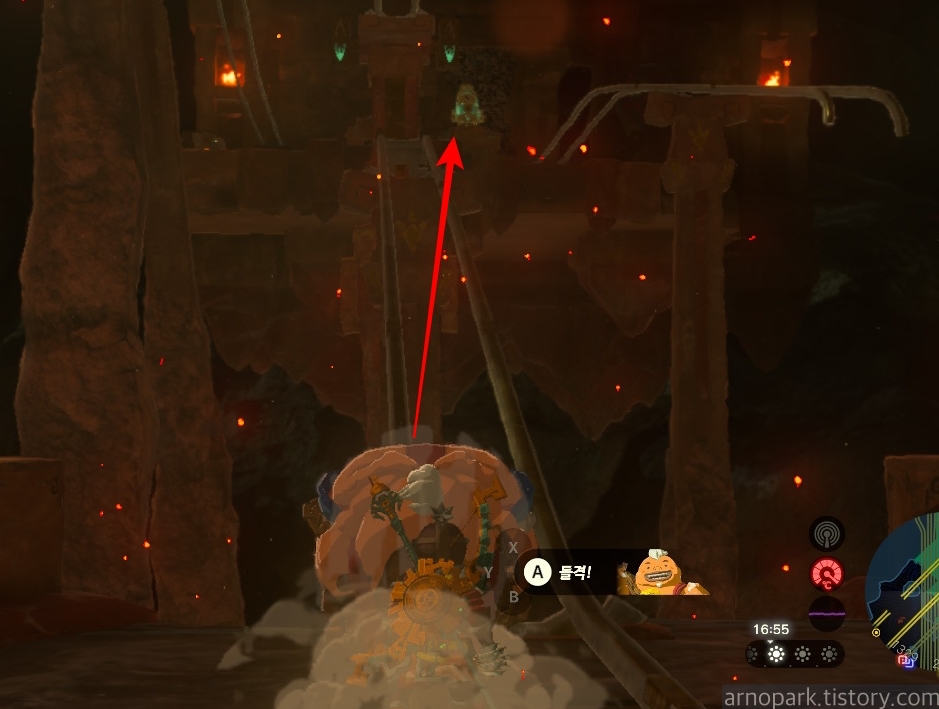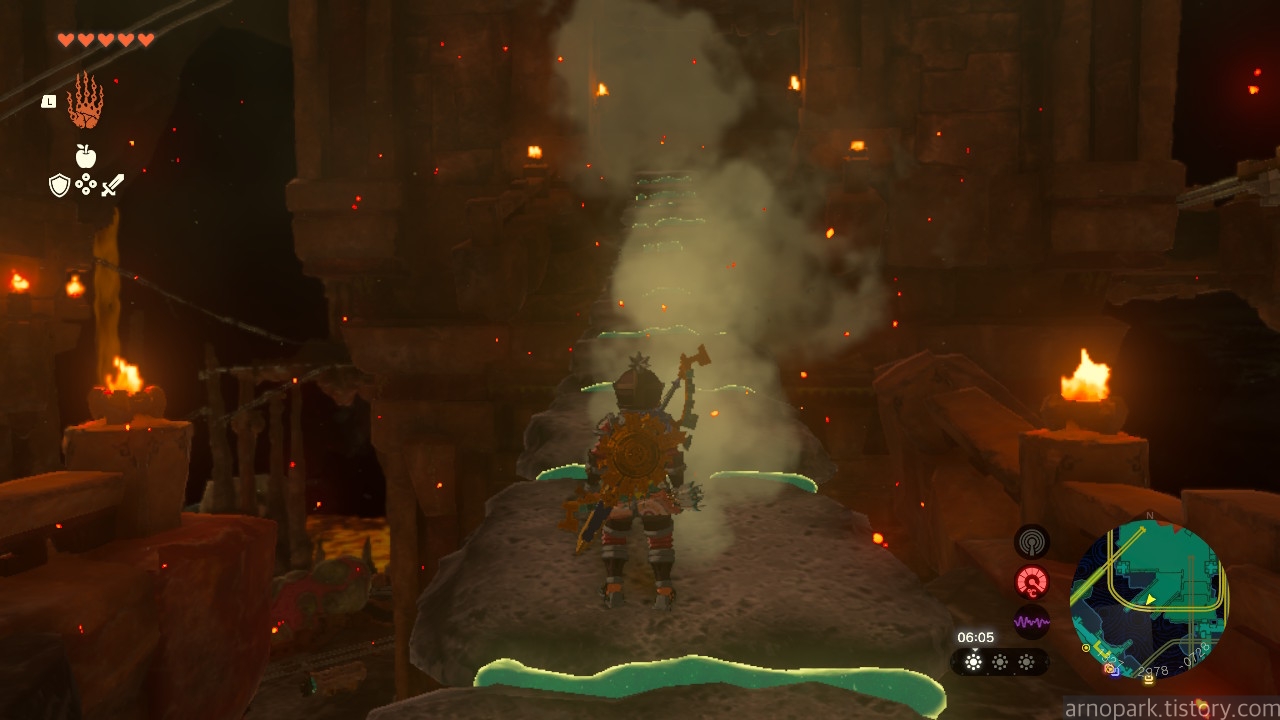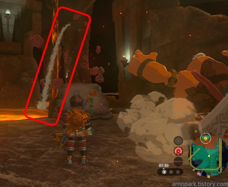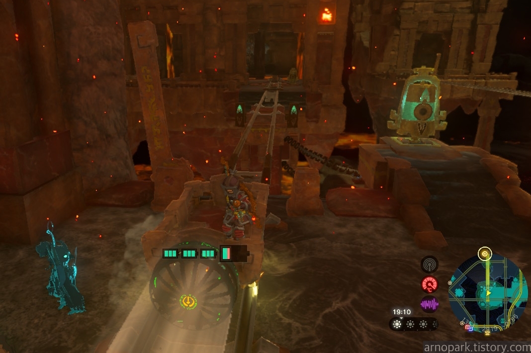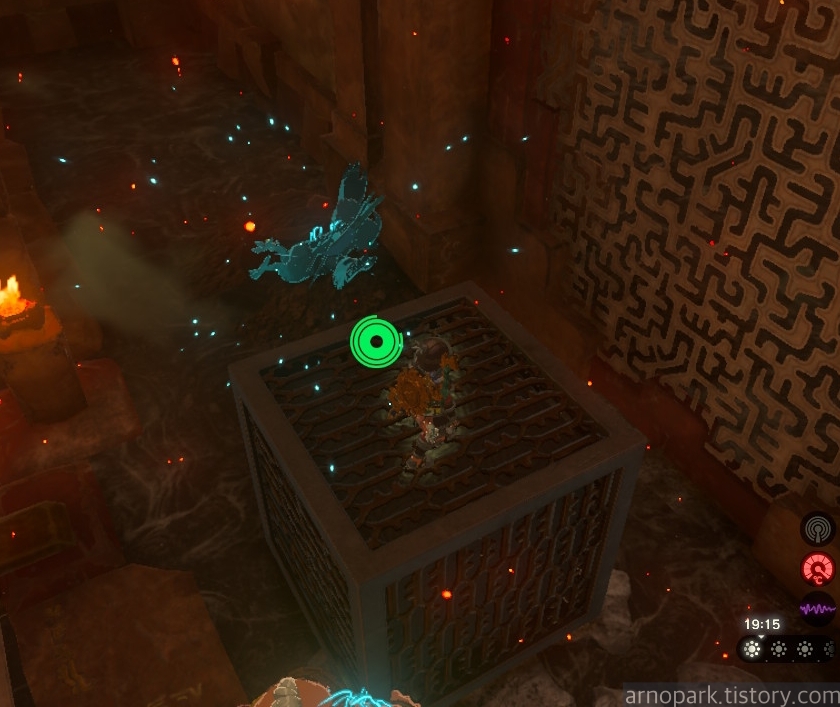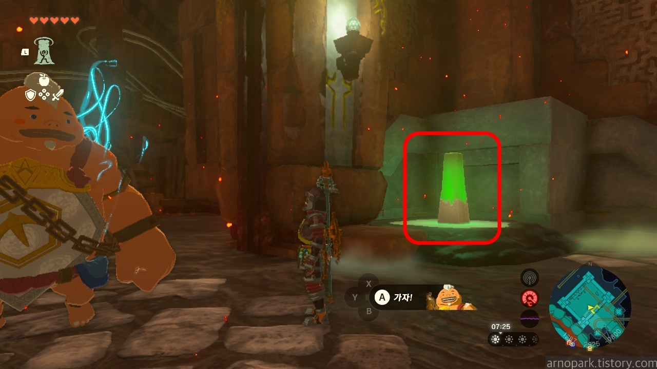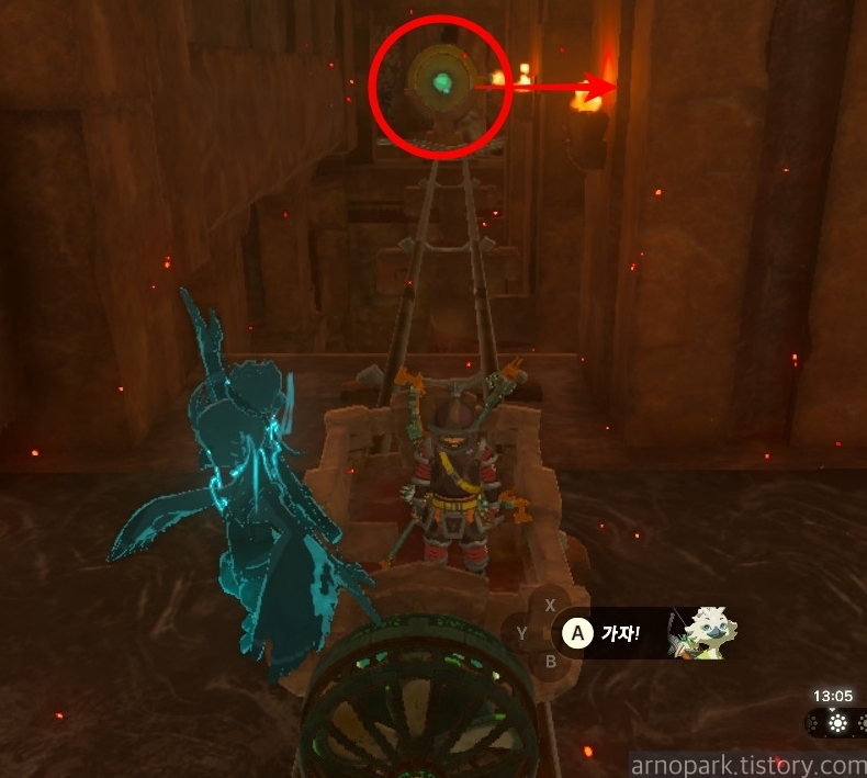 유적 골렘을 잡고, 왼쪽 용암 길로 갑니다.