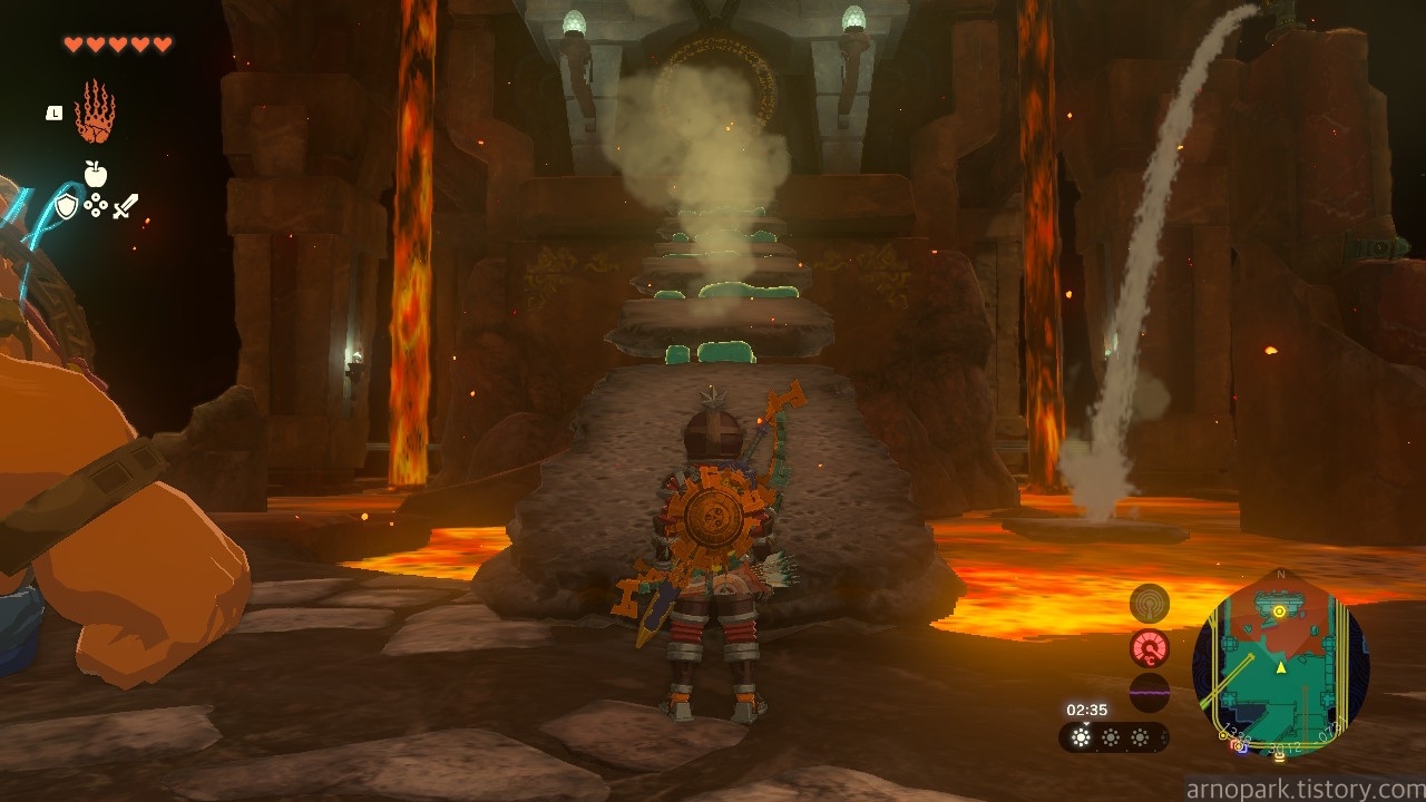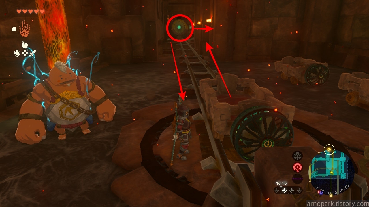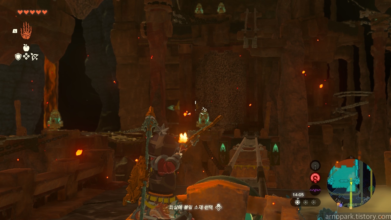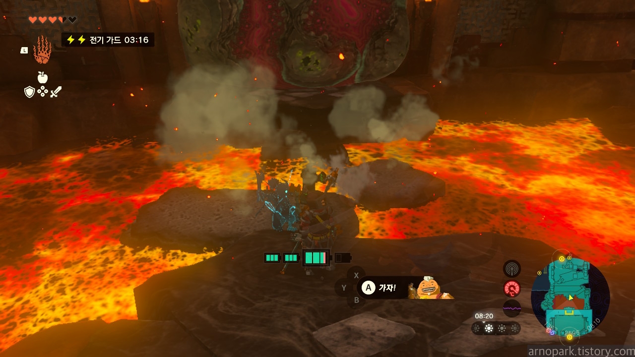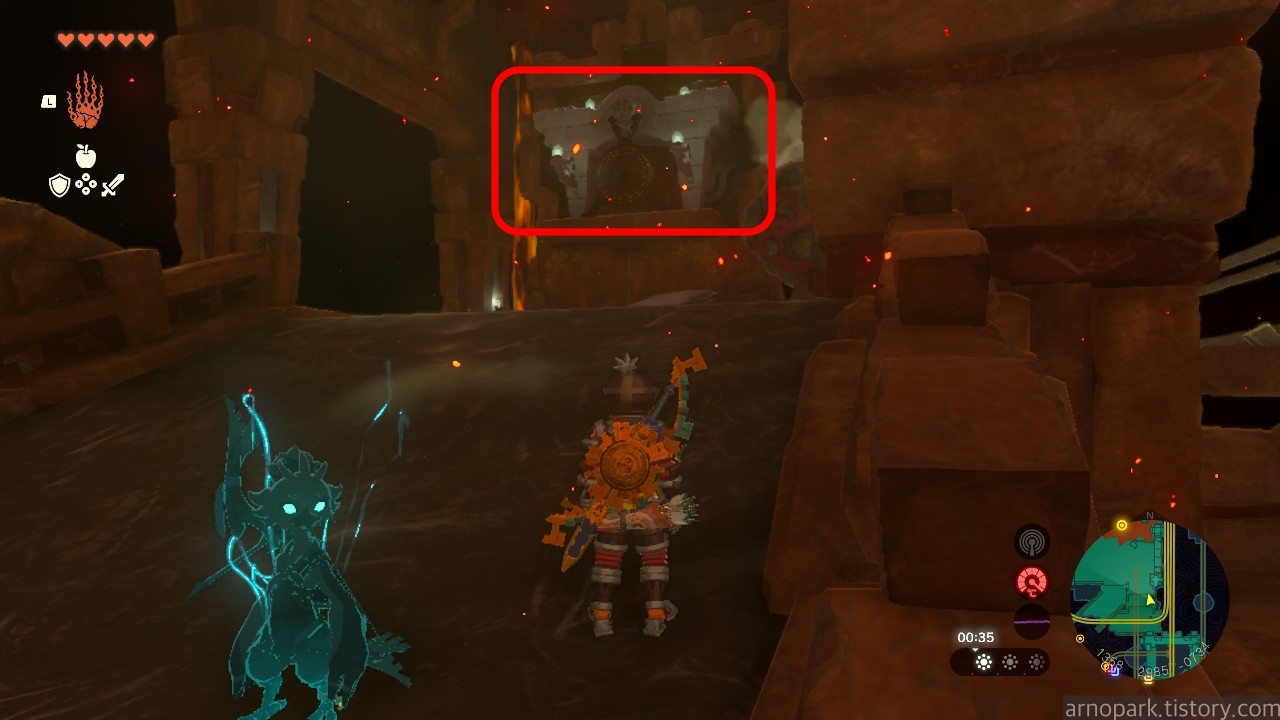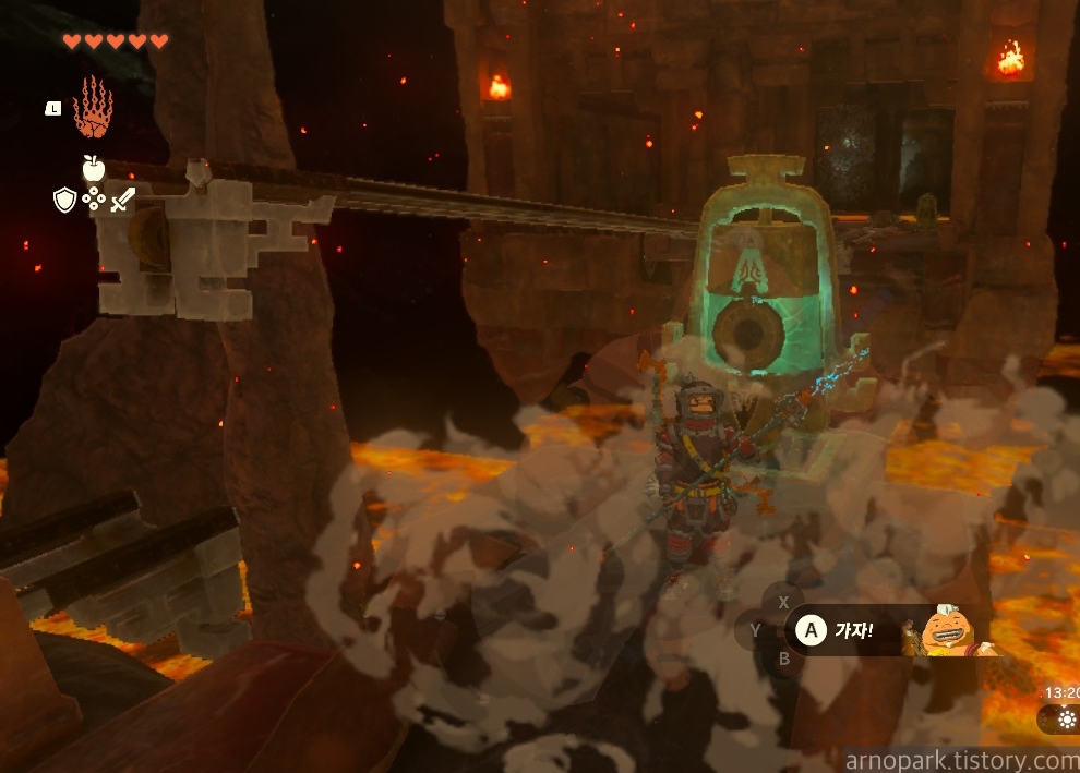유적 골렘을 잡고, 왼쪽 용암 길로 갑니다.