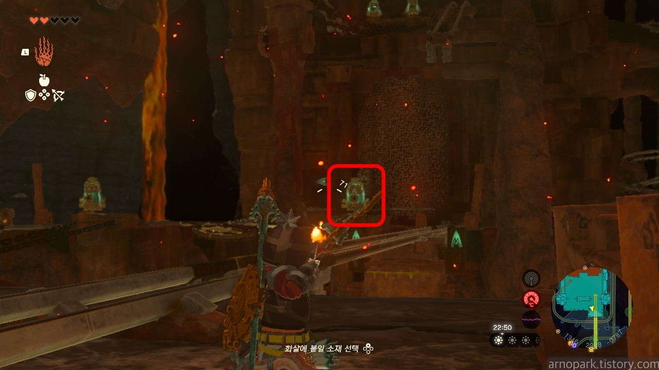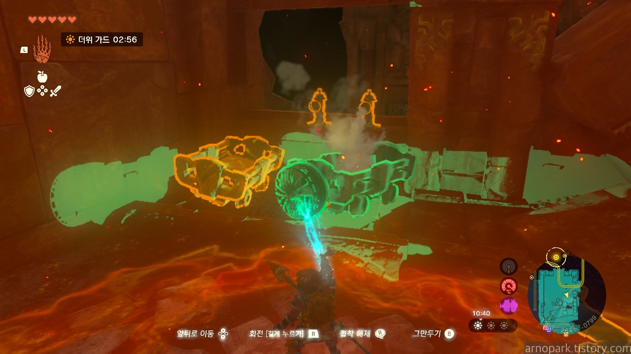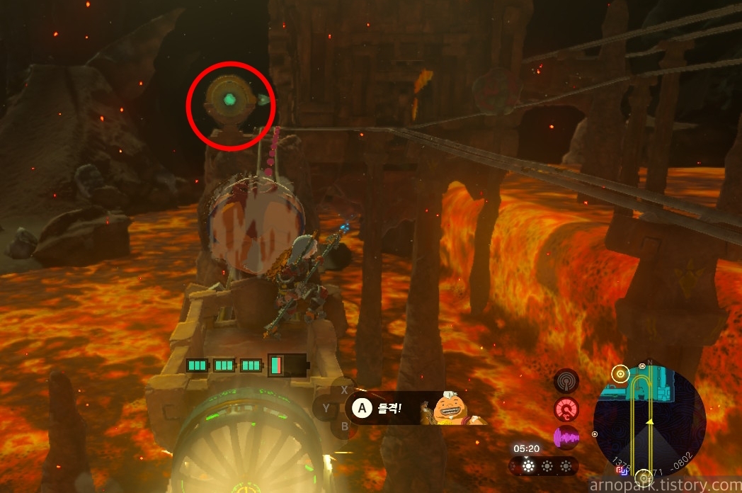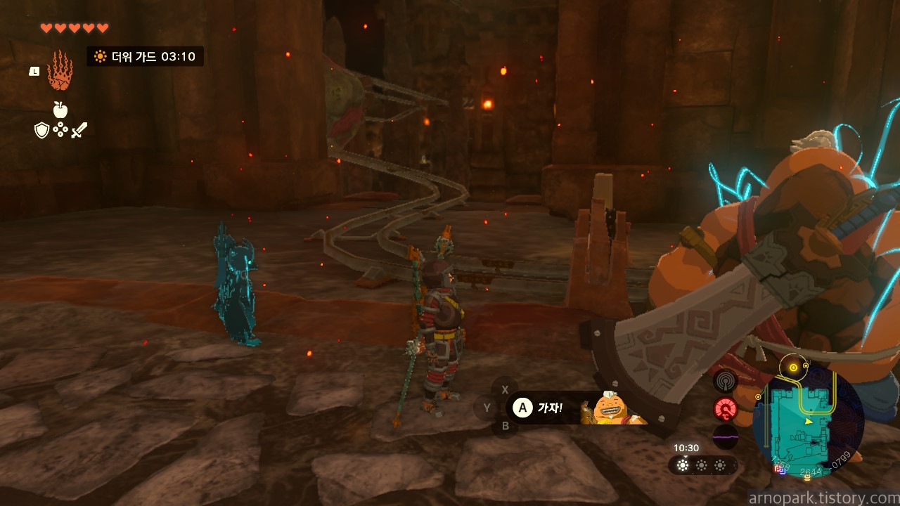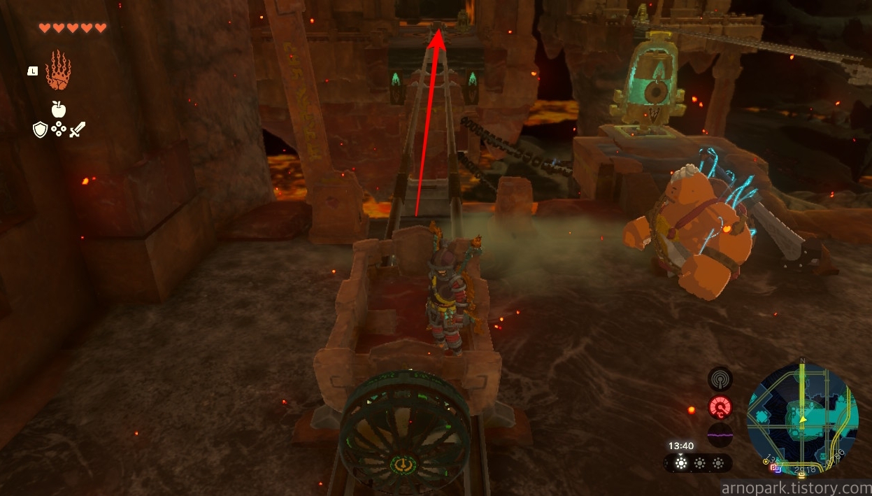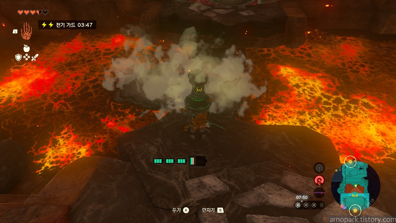 유적 골렘을 잡고, 왼쪽 용암 길로 갑니다.