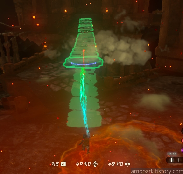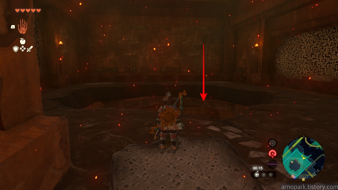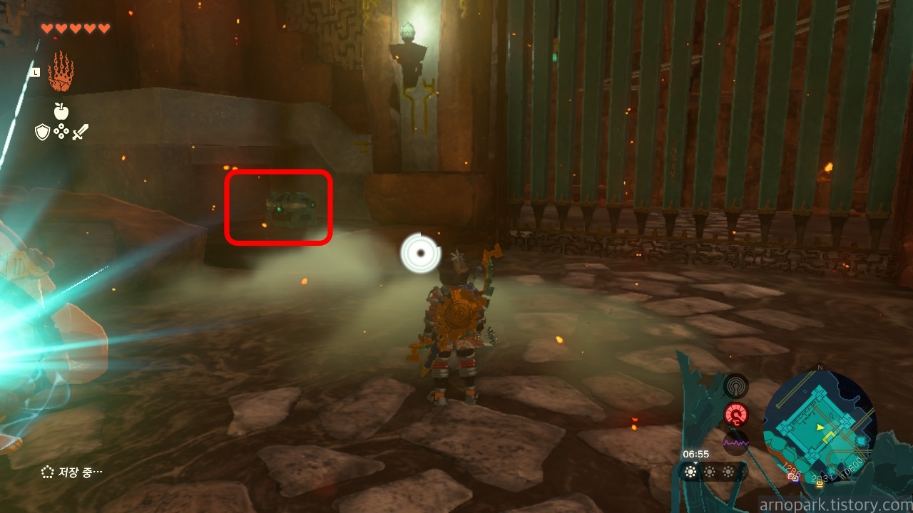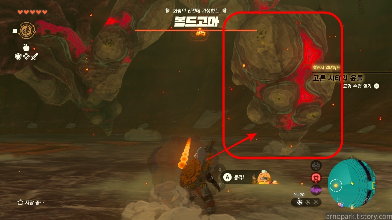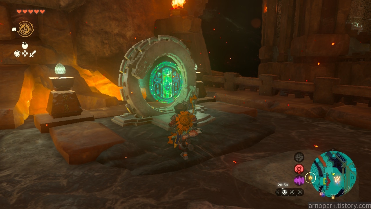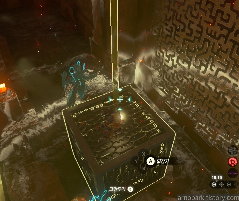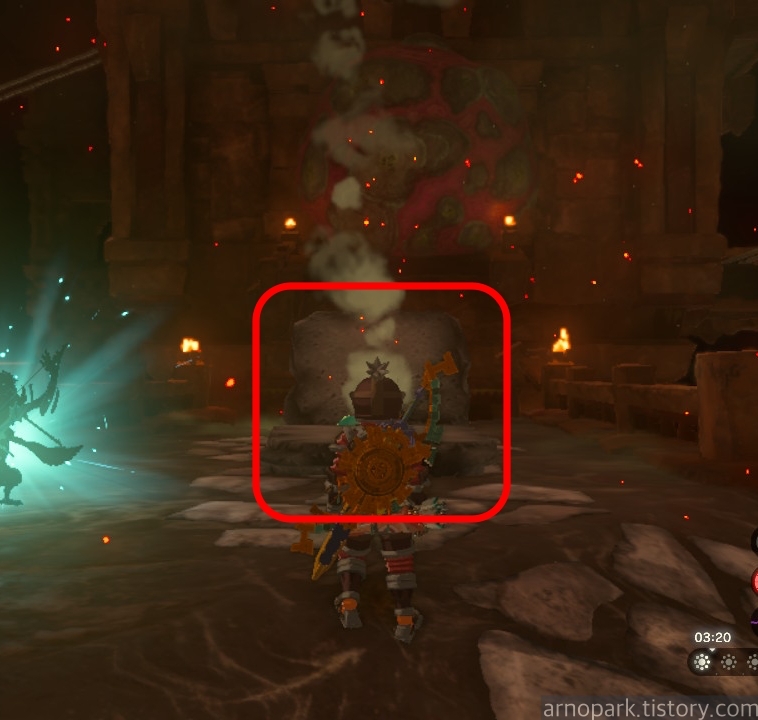 유적 골렘을 잡고, 왼쪽 용암 길로 갑니다.