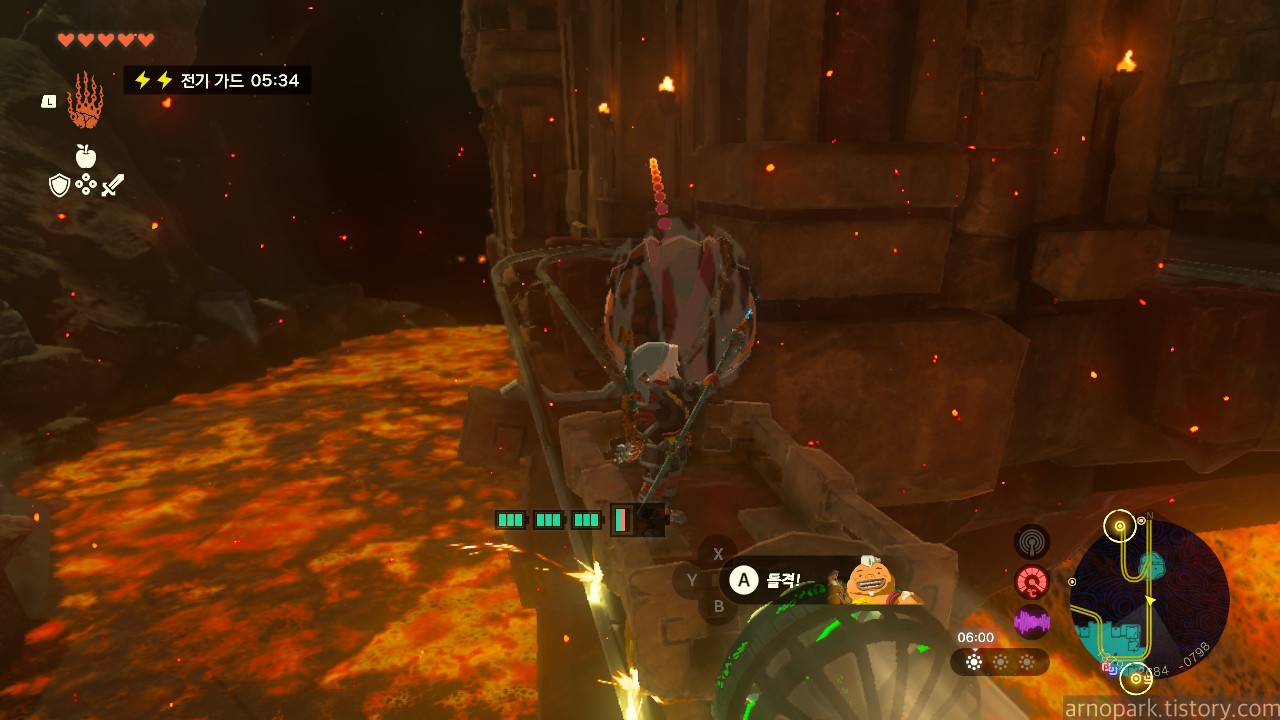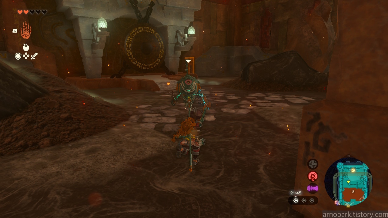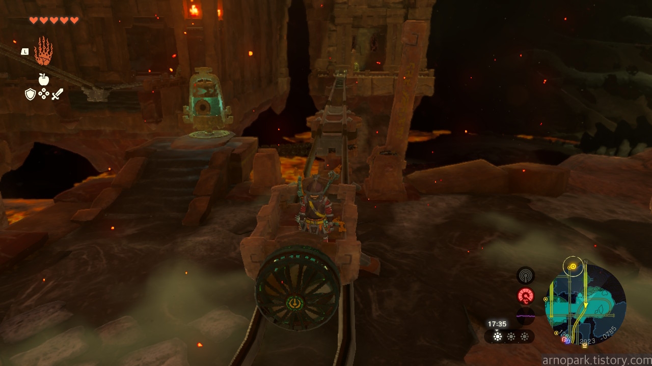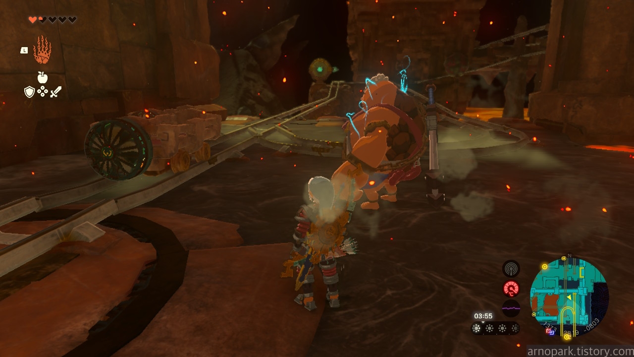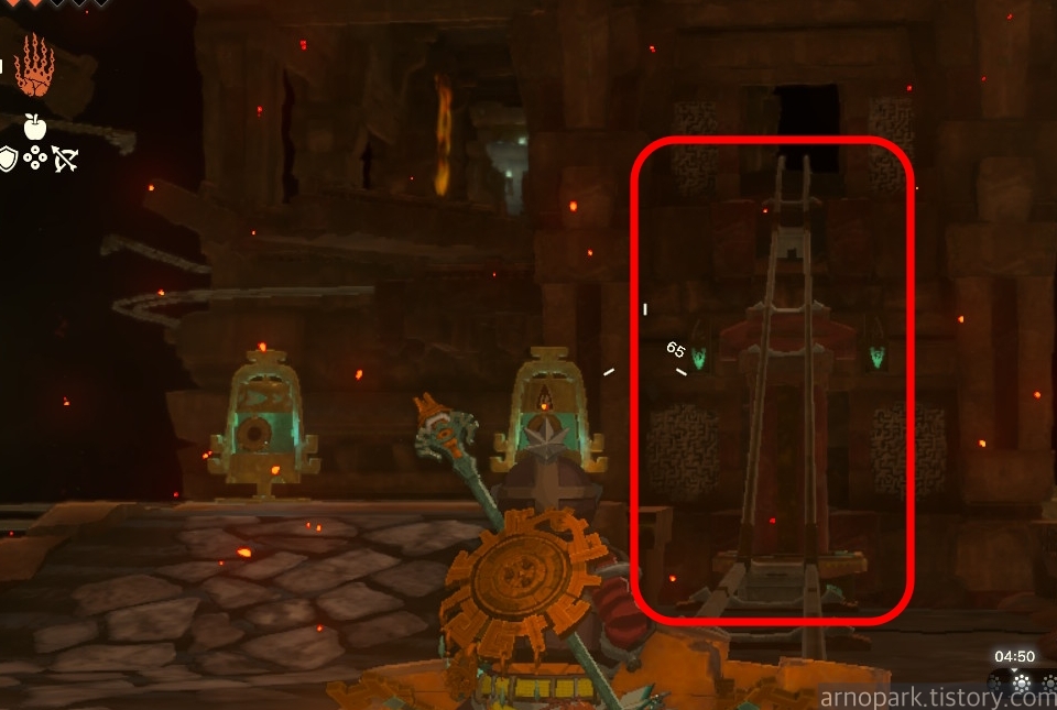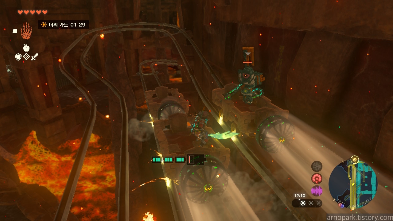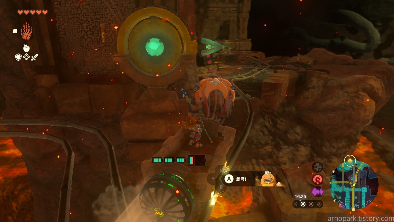 유적 골렘을 잡고, 왼쪽 용암 길로 갑니다.
