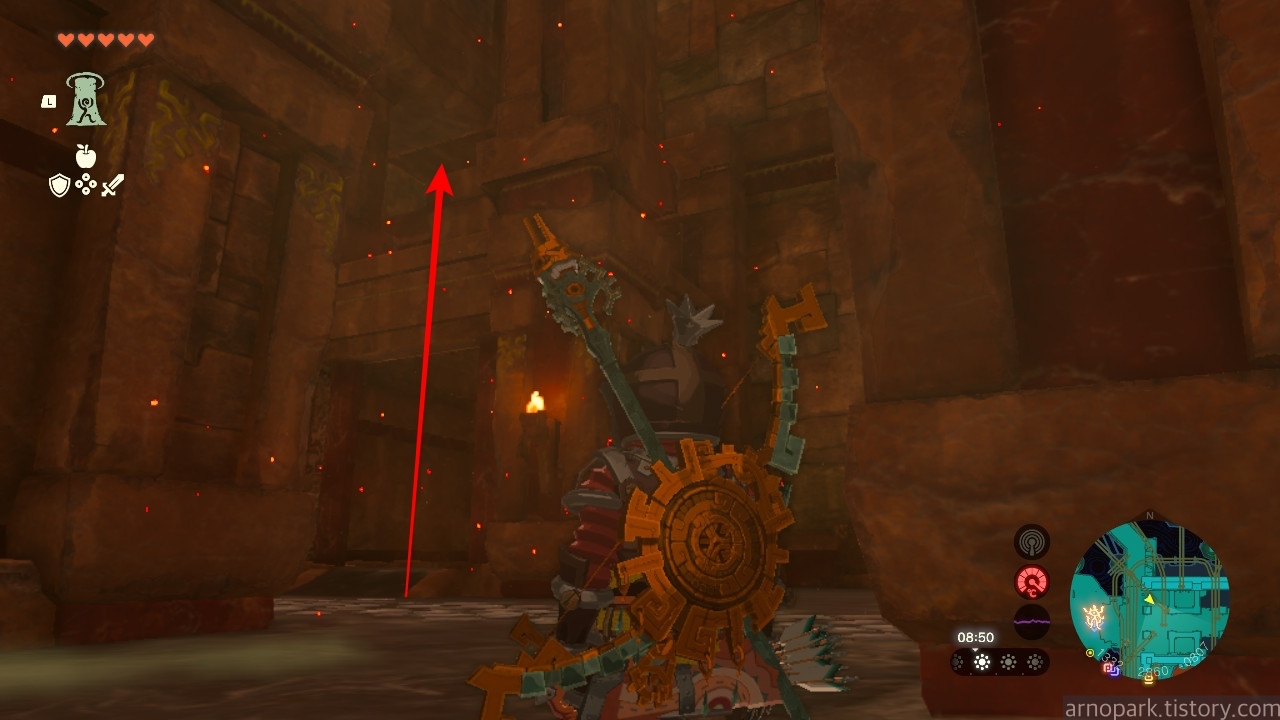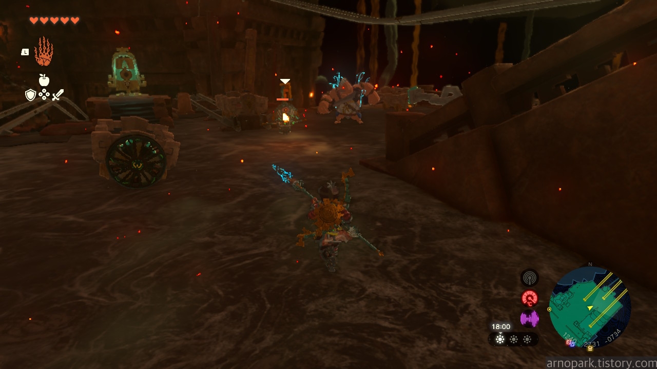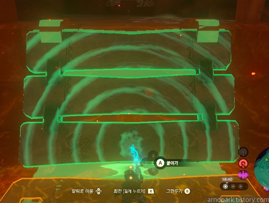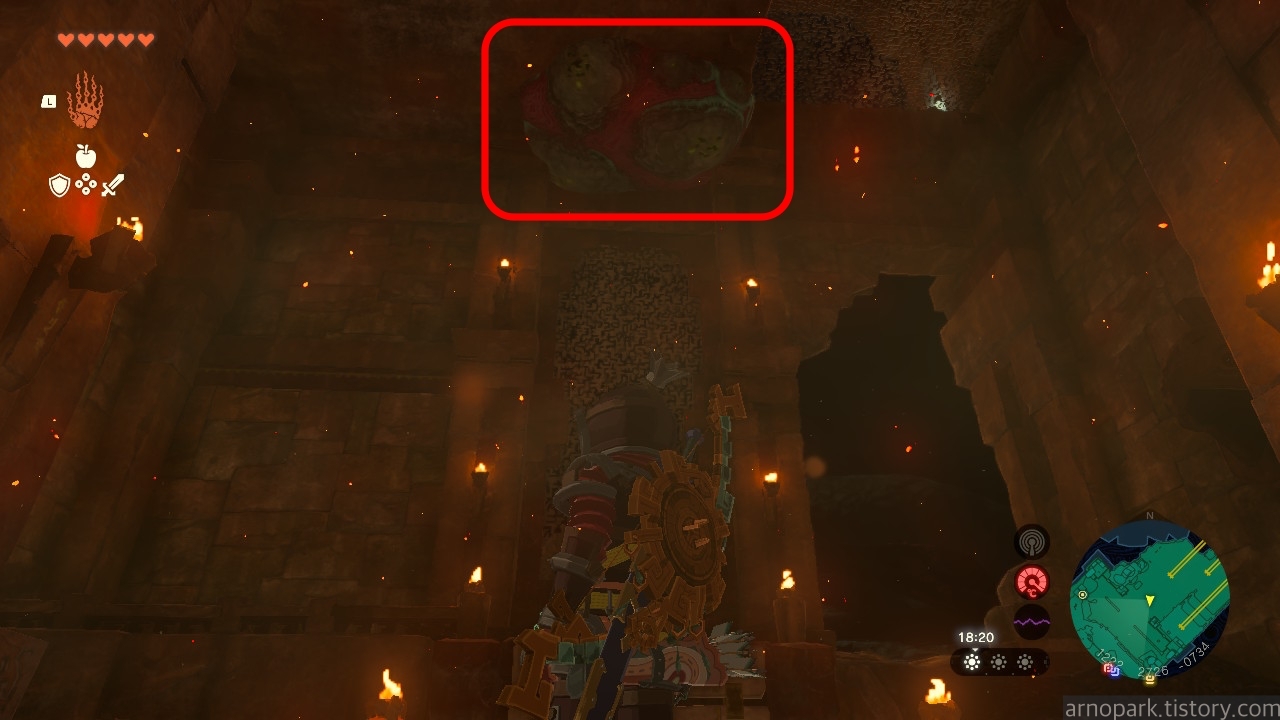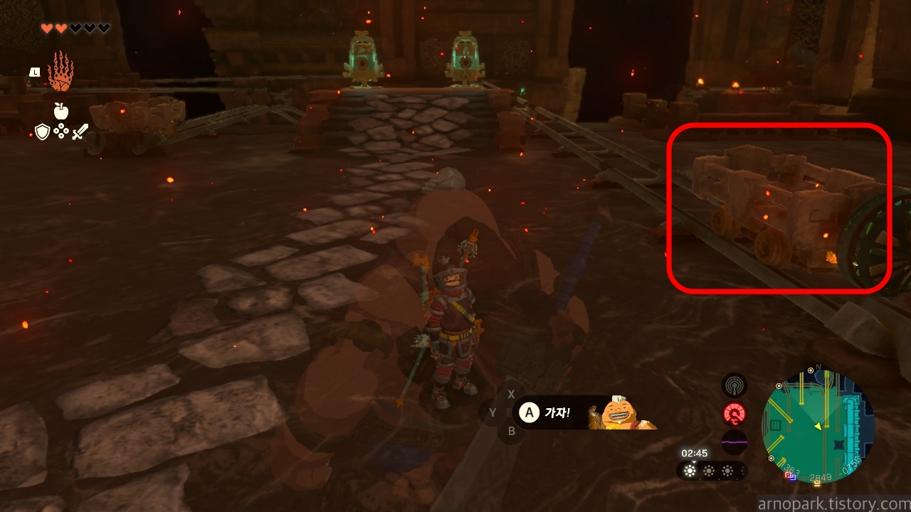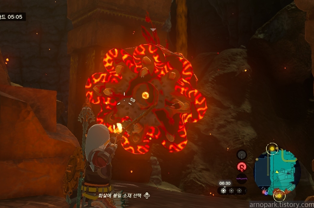 유적 골렘을 잡고, 왼쪽 용암 길로 갑니다.
