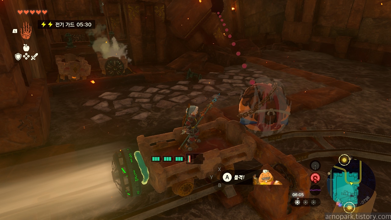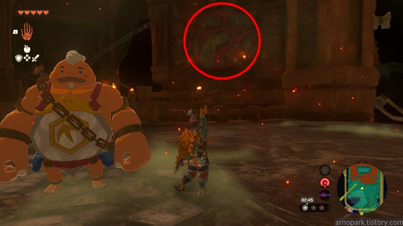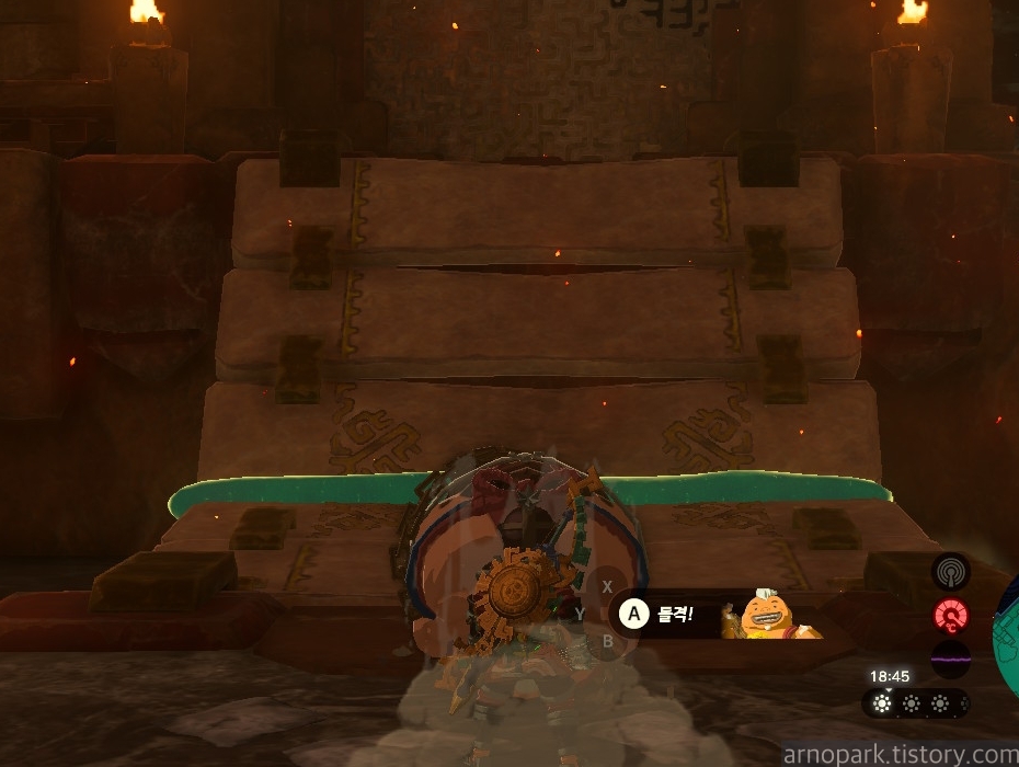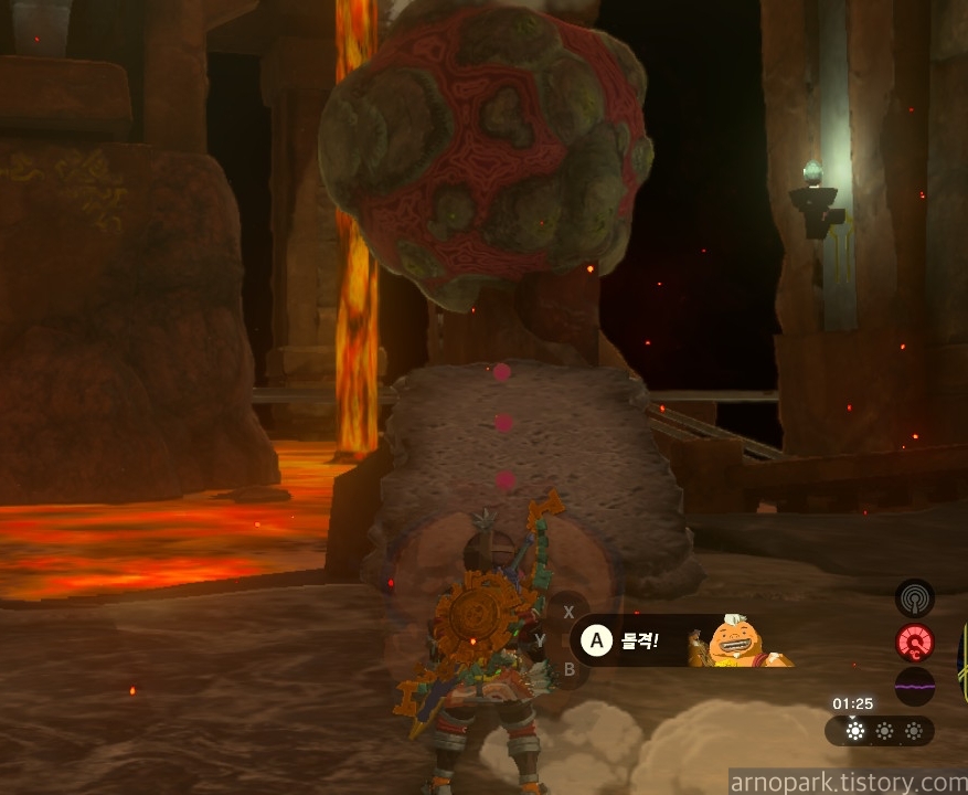 이 돌 폭탄이 링크를 가둘 때가 있는데, 윤돌을 써서 부시고 달아나지 못하면 죽습니다.