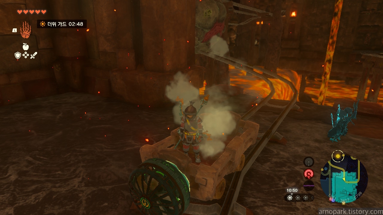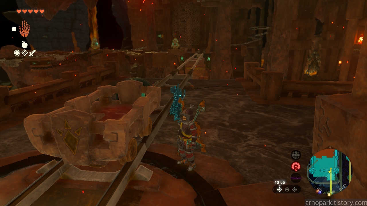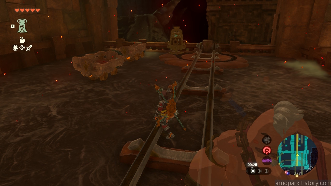 용암 지대에서 빠져 나옵니다. 아까 타고 온 광차 앞에 선 후,