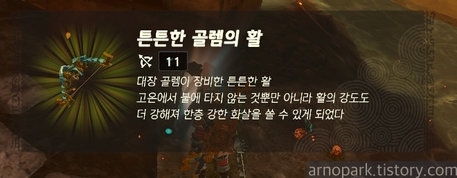 몬스터를 잡으면 상자가 나옵니다. 이 상자에는 튼튼한 골렘의 활이 있습니다.