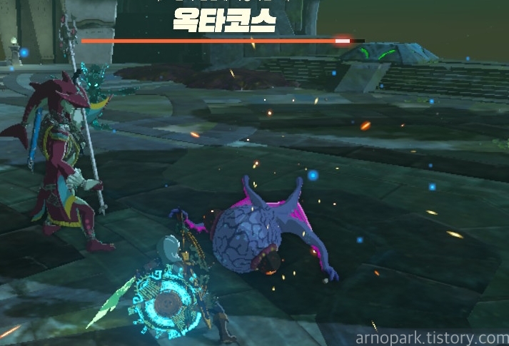 그러면 옥타코스를 떨구는데, 이때 옥타코스를 때리면 딜이 들어갑니다.