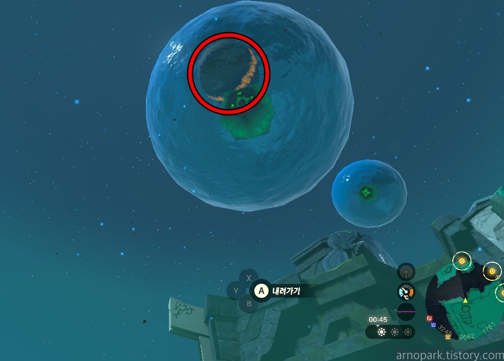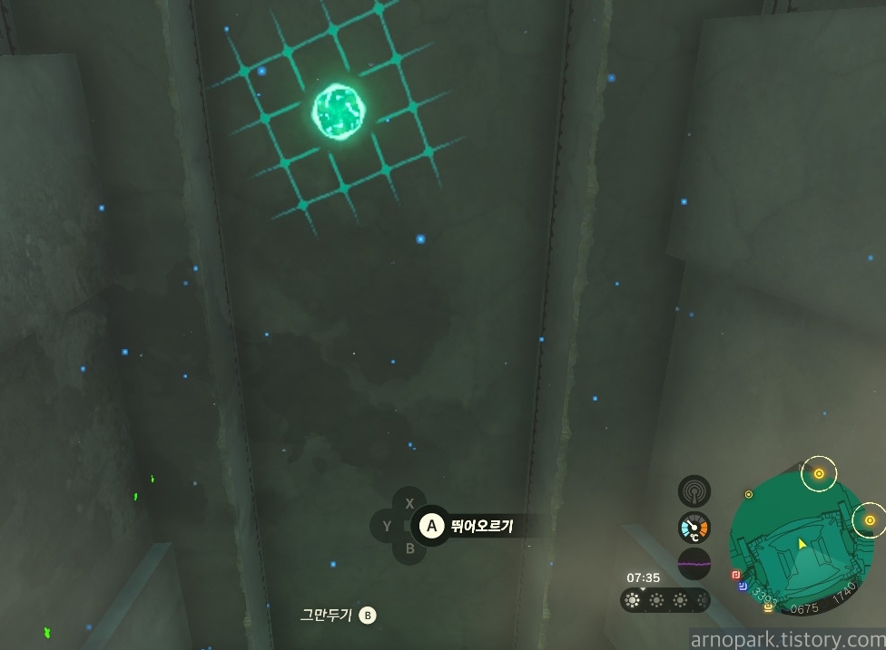 안으로 쭉 들어가면, 구슬과 여러 개의 부유석이 있습니다.