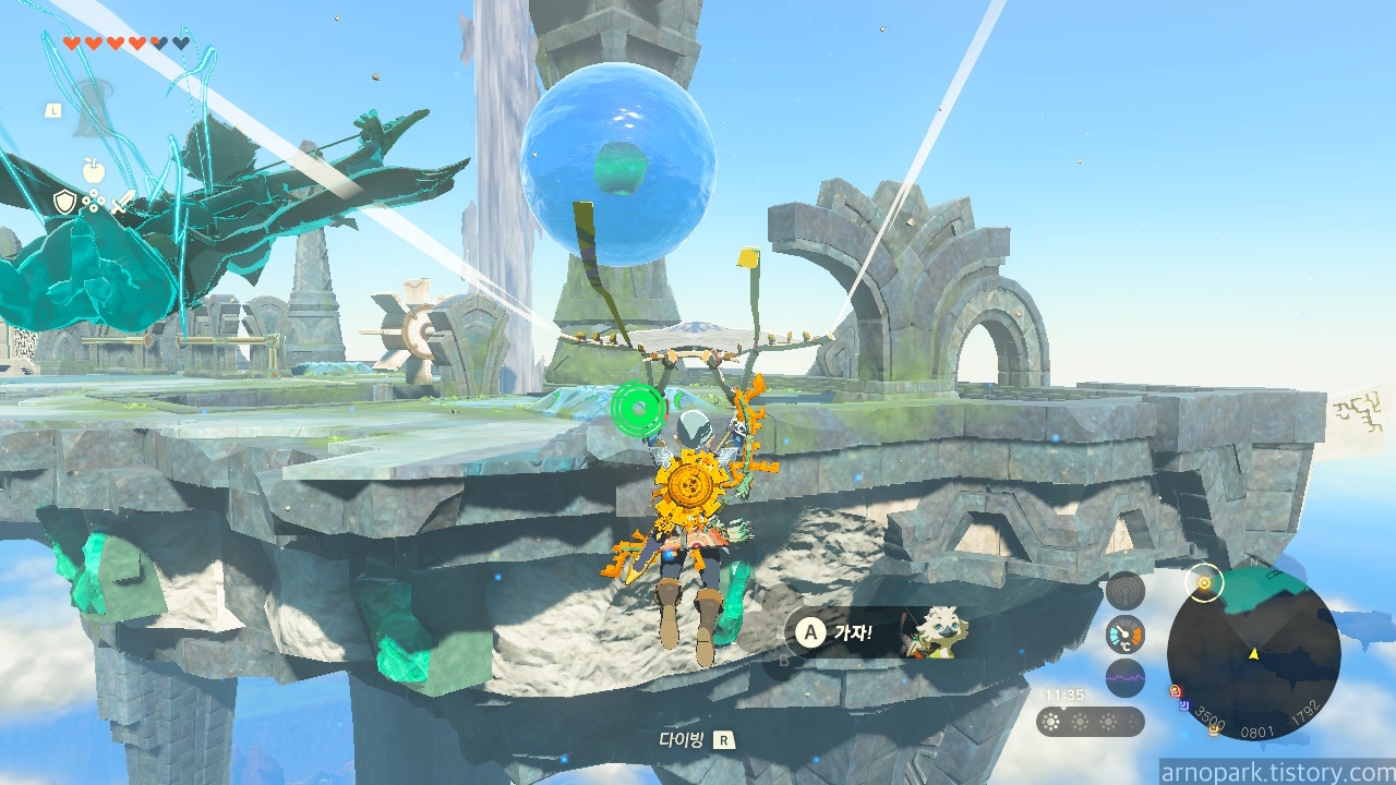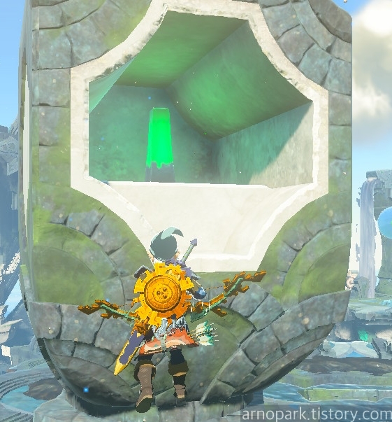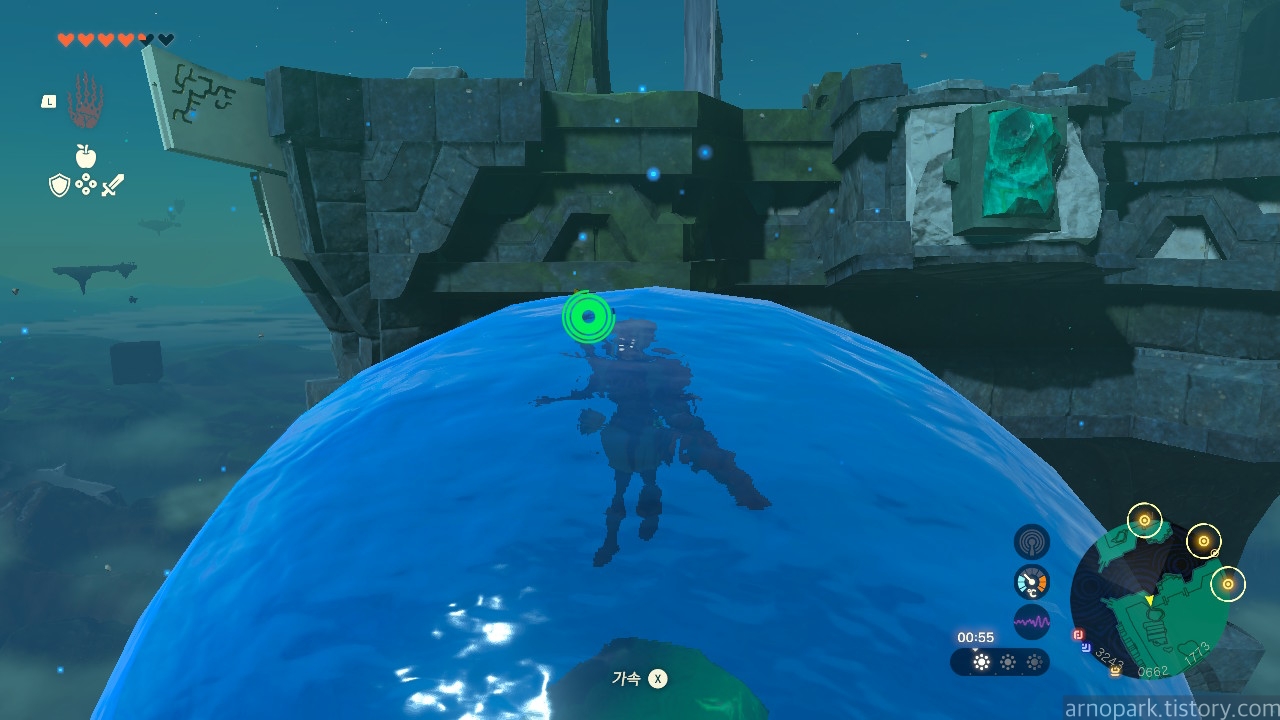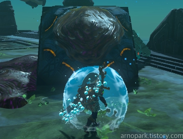 그리고 링크도 물방울 안에 타서, 구슬을 따라 올라갑니다.