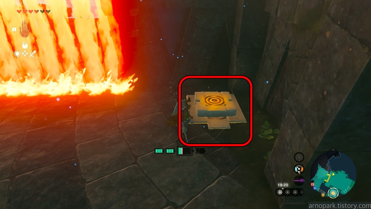 스위치에 부유석을 올리면, 불이 꺼지고 시드가 지하 안으로 들어올 수 있습니다.