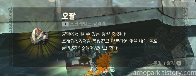 진흙 물고기에 물 공격을 가하면, 위 사진처럼 옥타코스가 떨어져 나옵니다.
