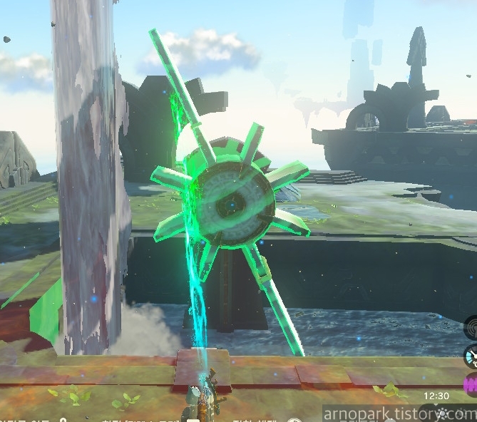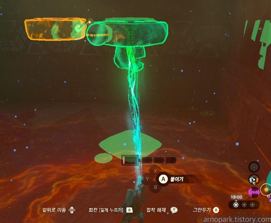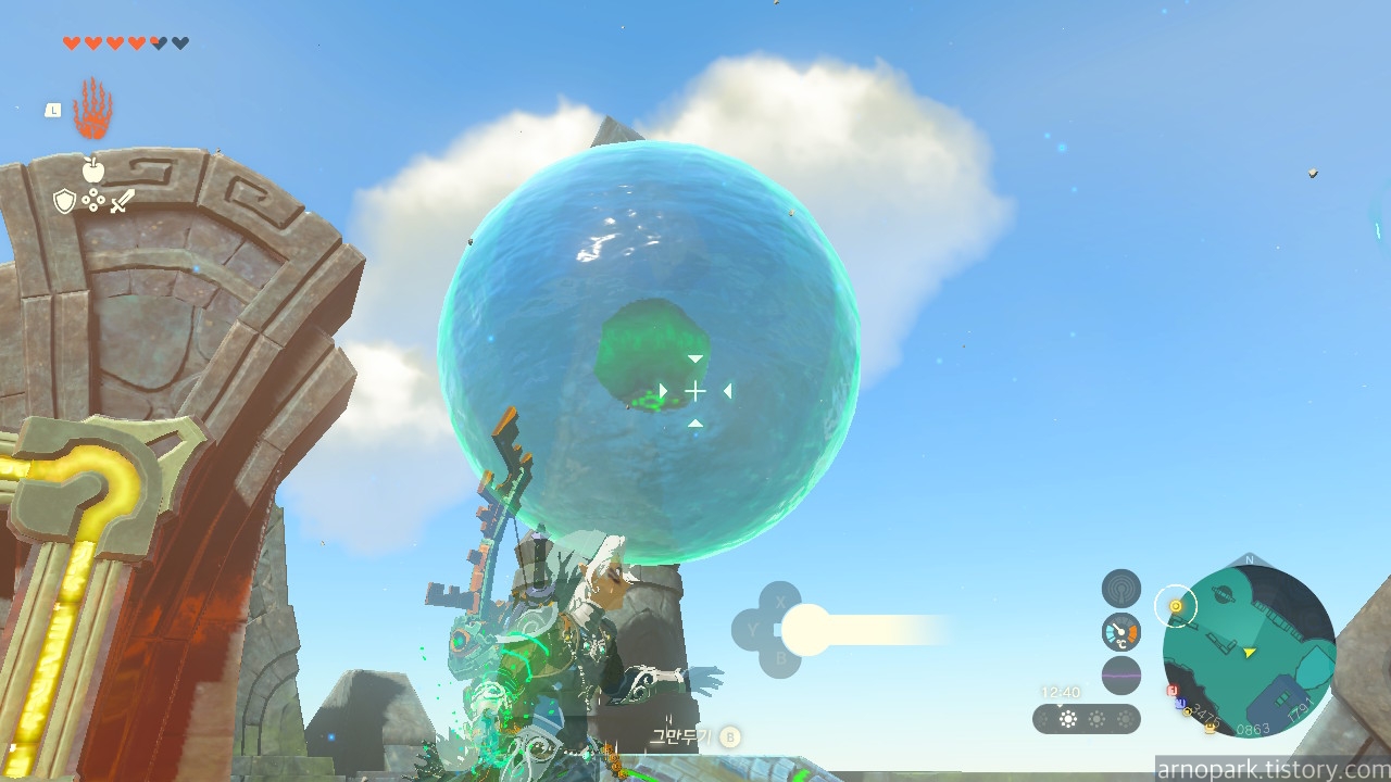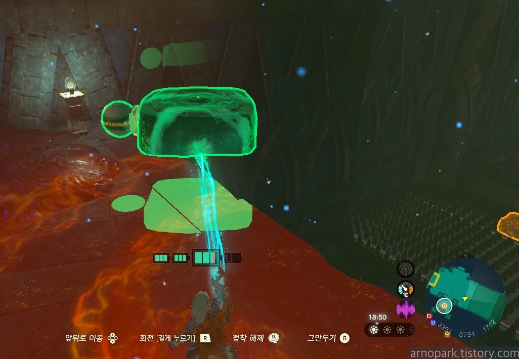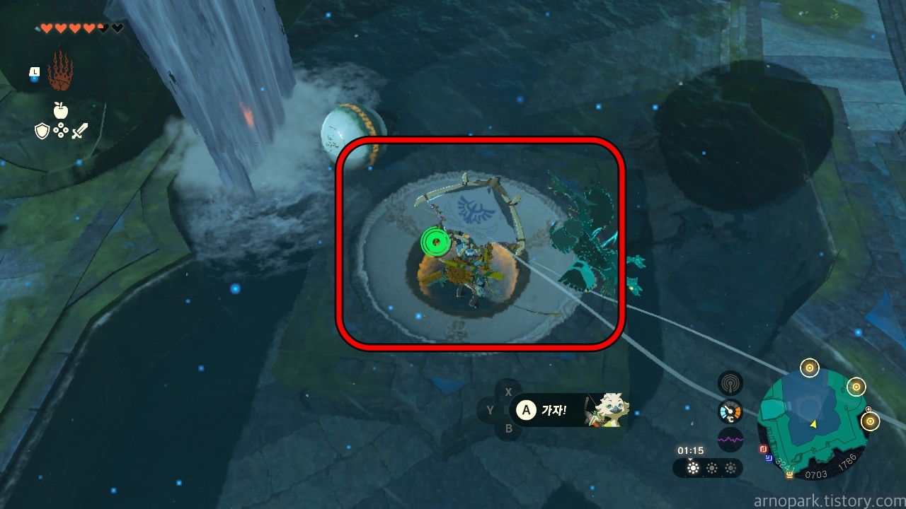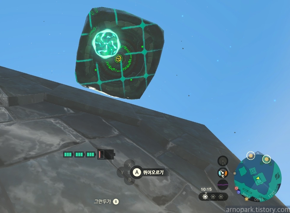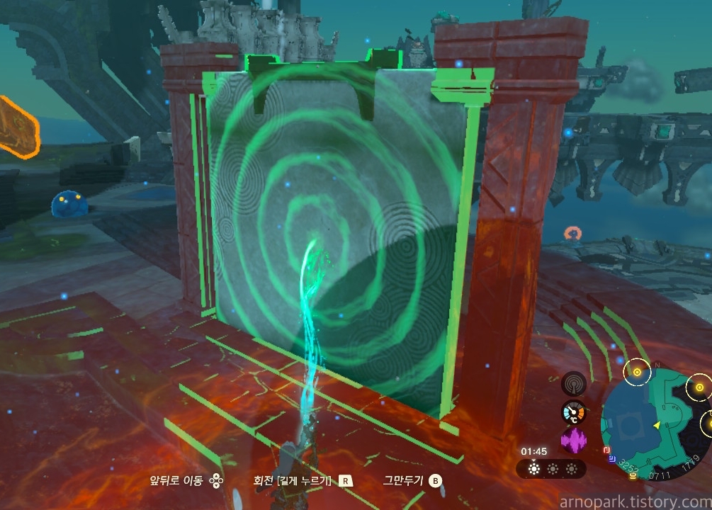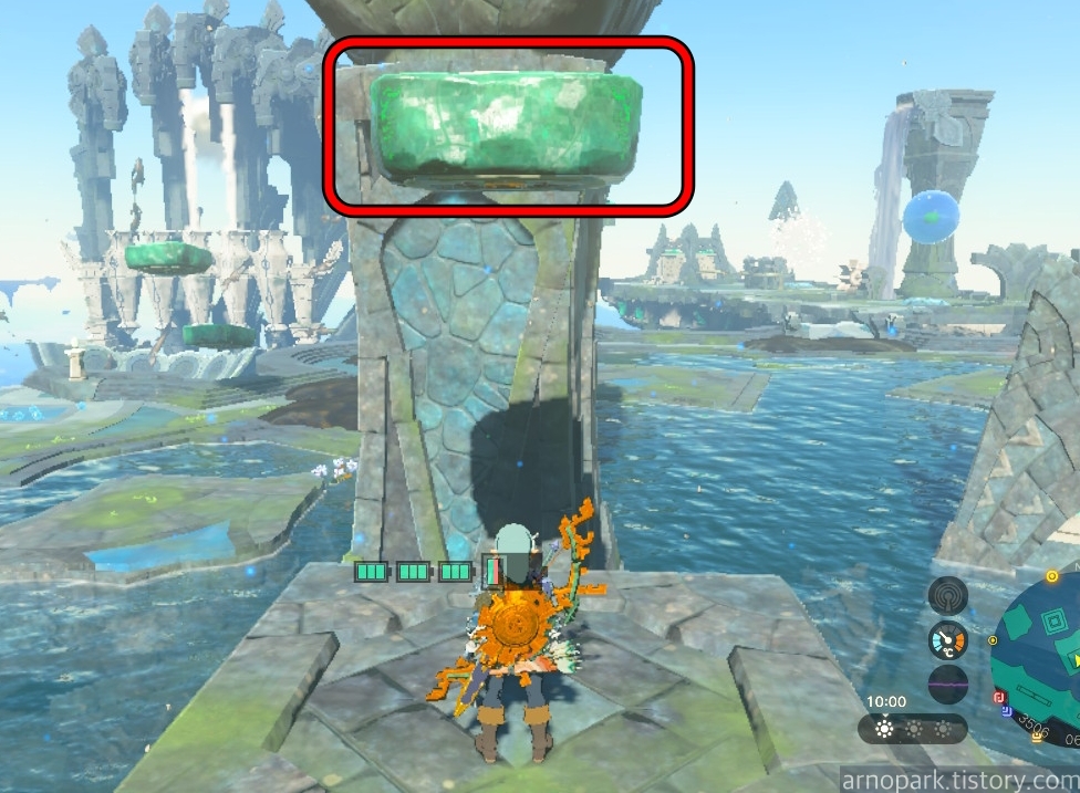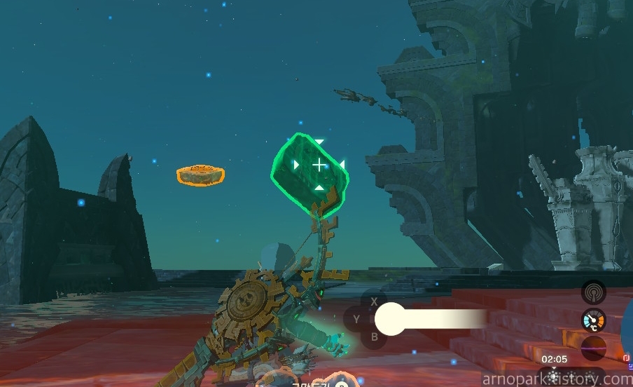 장치 근처에 부유석을 띄운 후, 부유석 위에 올라탑니다.