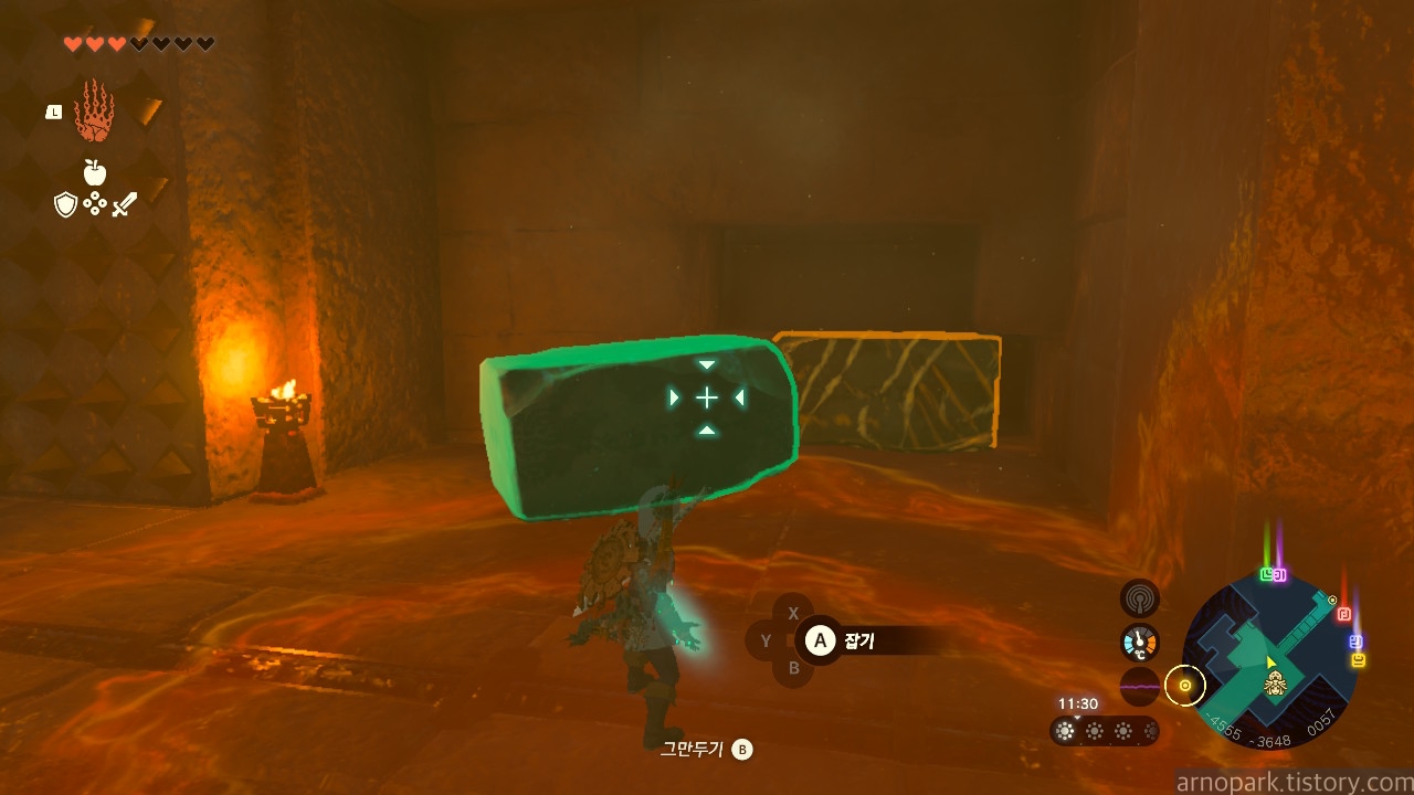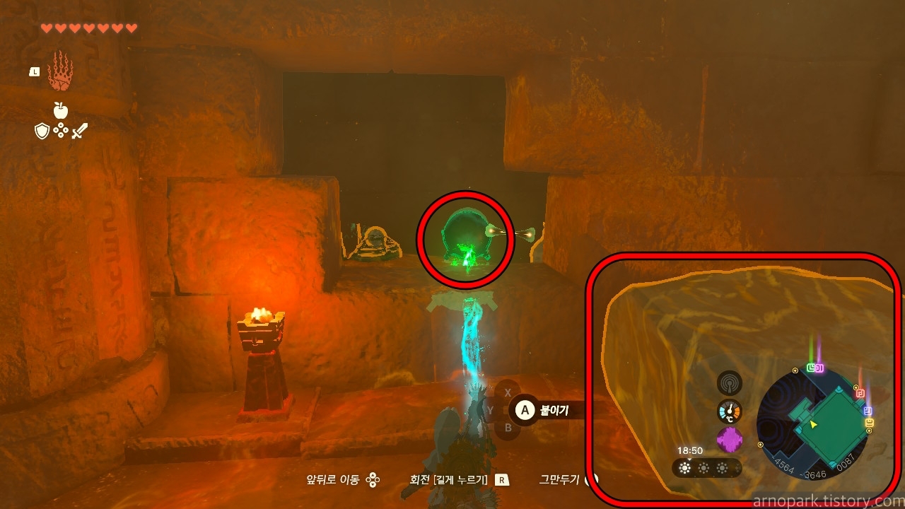 안에 또 다른 압정 함정이 있습니다. 똑같이 근처의 돌을 이용해서 함정을 막고, 안으로 들어갑니다.