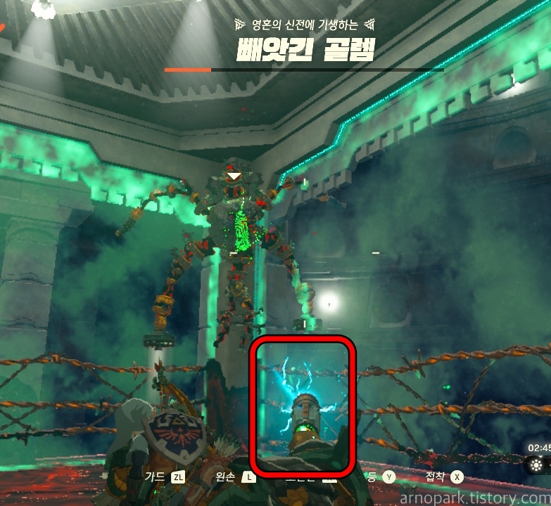 빼앗긴 골렘도 가드를 하기 때문에, 먼저 공격을 한 번 막은 후 철퇴로 때립시다.