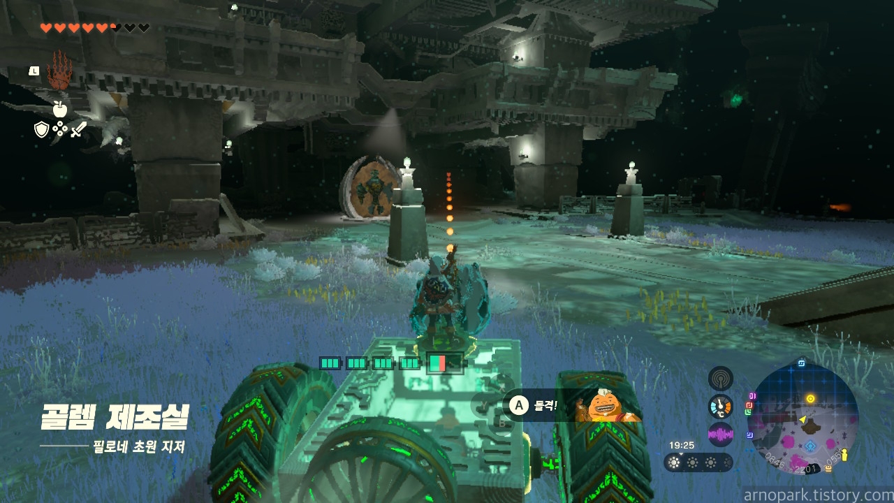골렘 근처로 가면, 골렘에 탑승해서 이동할 수 있습니다.