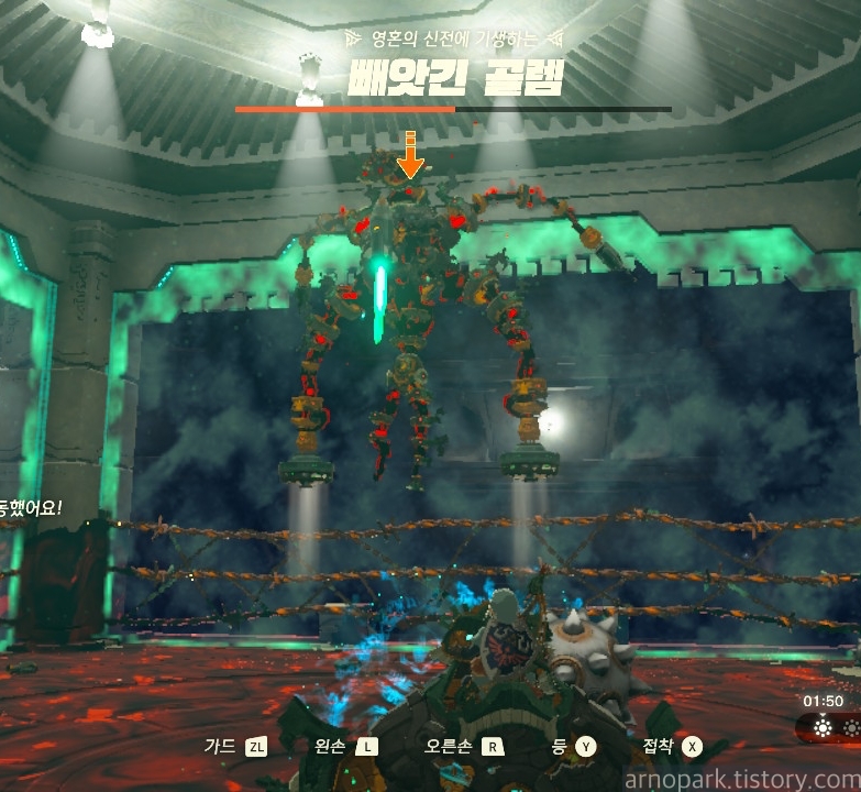 레슬링장이 생성됩니다. 계속 골렘을 탄 상태에서 전투를 합니다.