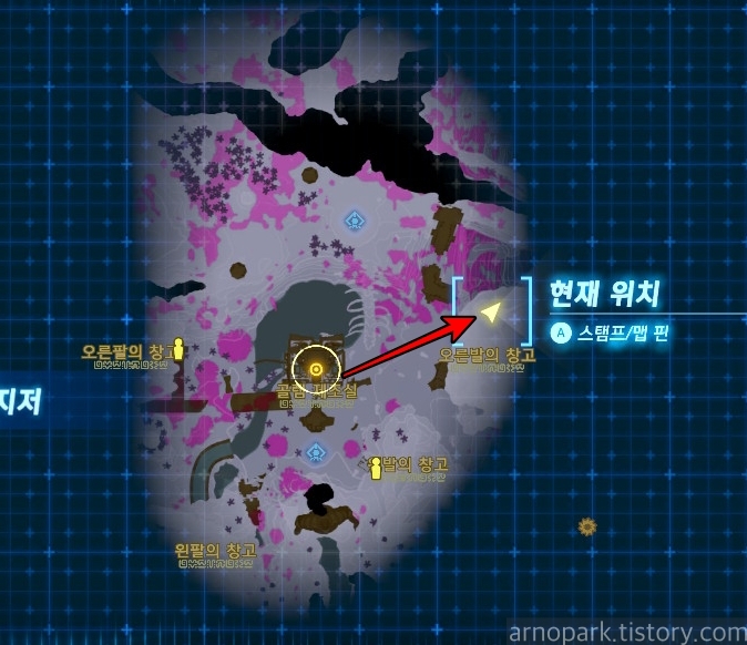 이번엔 왼팔의 창고입니다. 골렘 제조실을 기준으로 남서쪽에 있습니다.