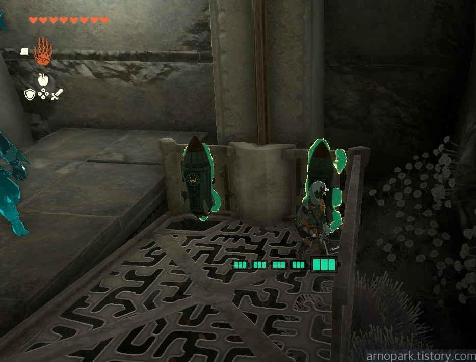 주변에 떨어져 있는 로켓을 주워서 단 후, 골렘 제조실까지 이동합니다.