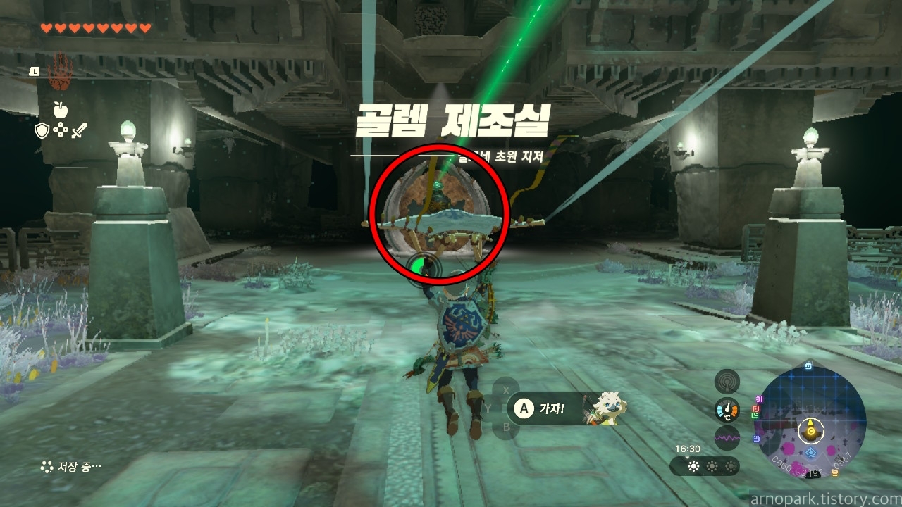 물길을 따라 내려가면서, 골렘 제조실로 갑니다.