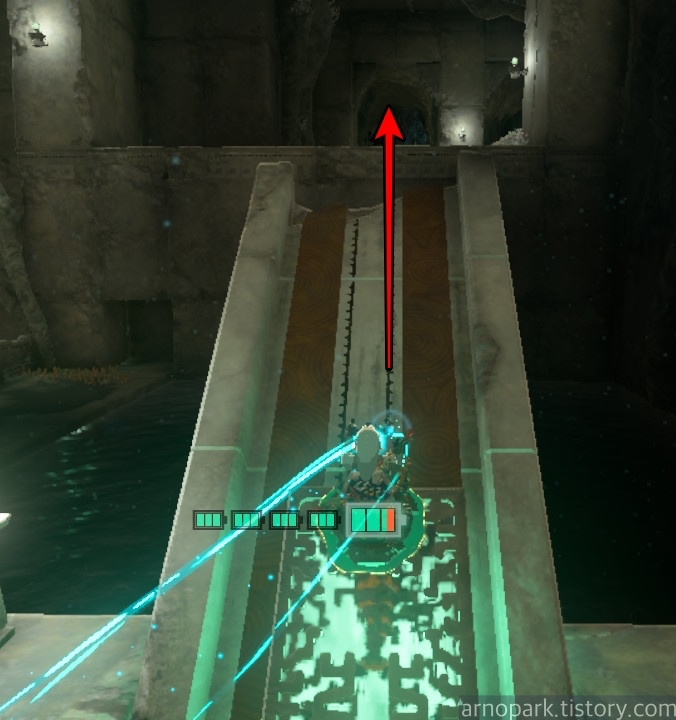 잔해에 탑승한 후, 리버레코를 타고 올라갑니다.