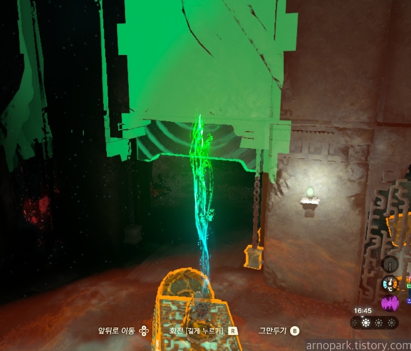 로켓을 등에 단 후, 신전 벽에 딱 붙어서 위로 올라가면 됩니다.