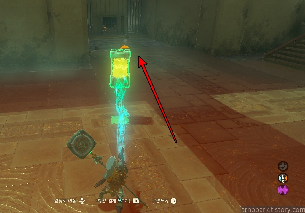 사당에 진입하면 바로 배터리가 보입니다. 이 배터리를 들고 오른쪽 구간으로 갑니다.