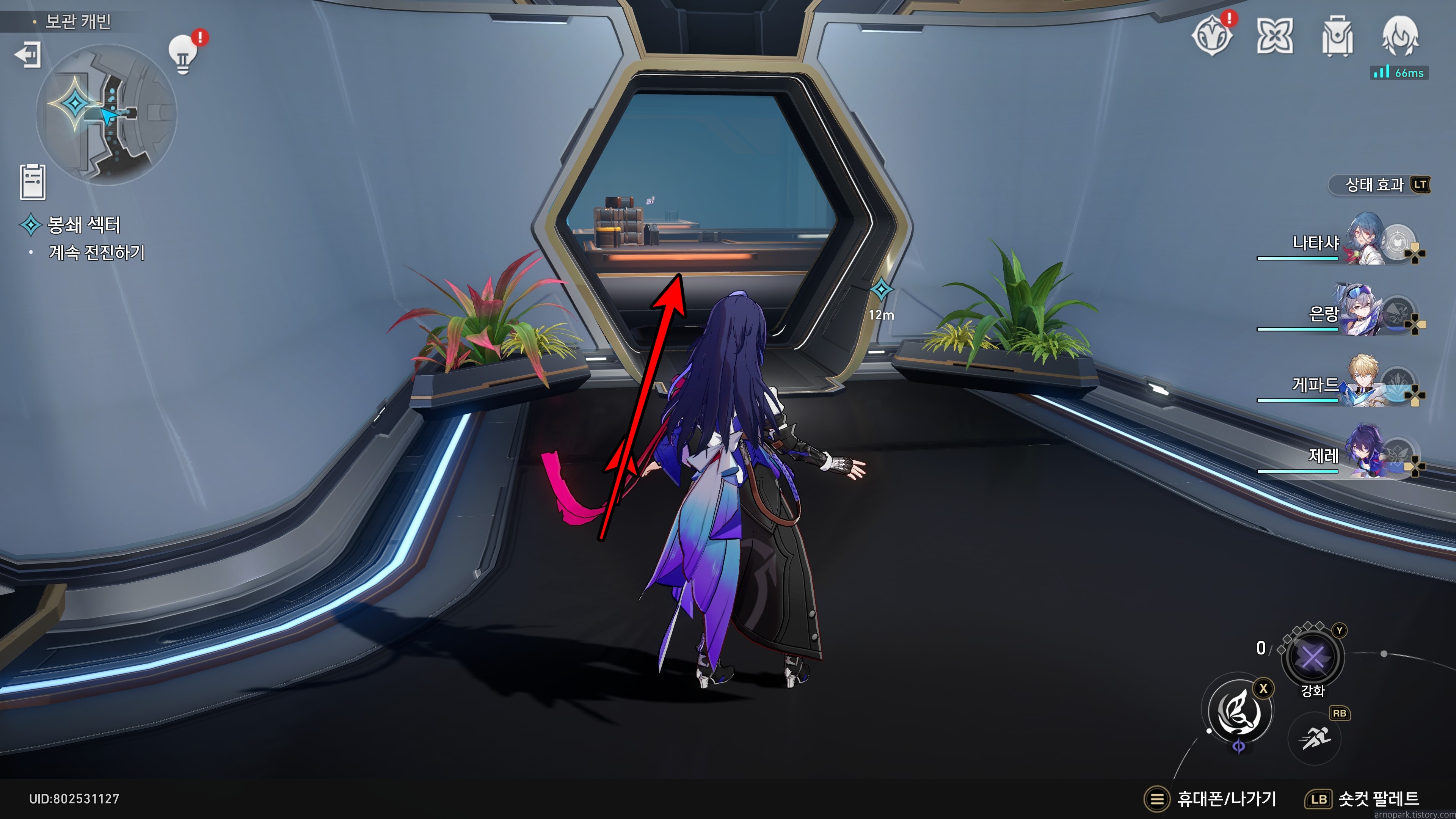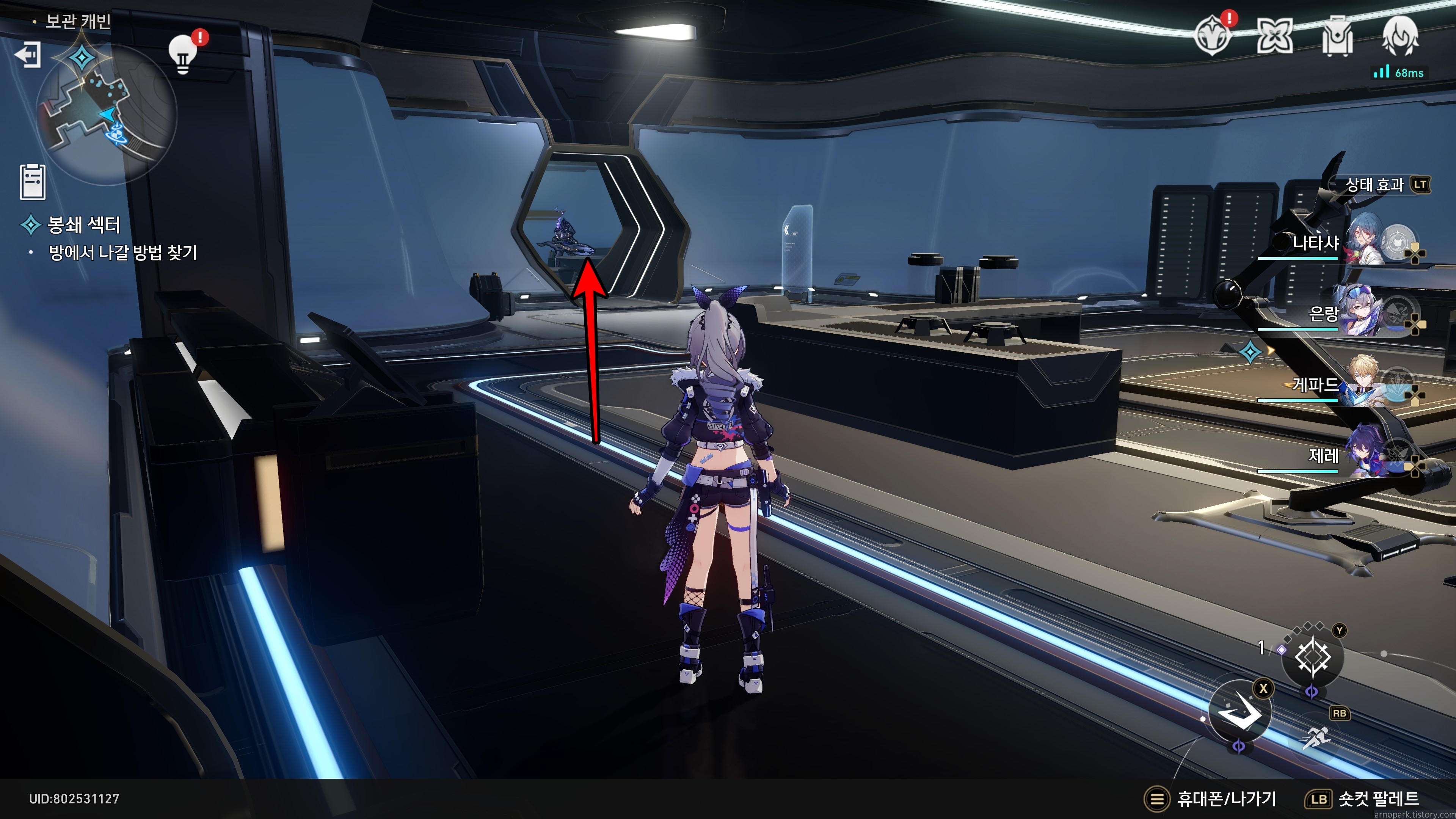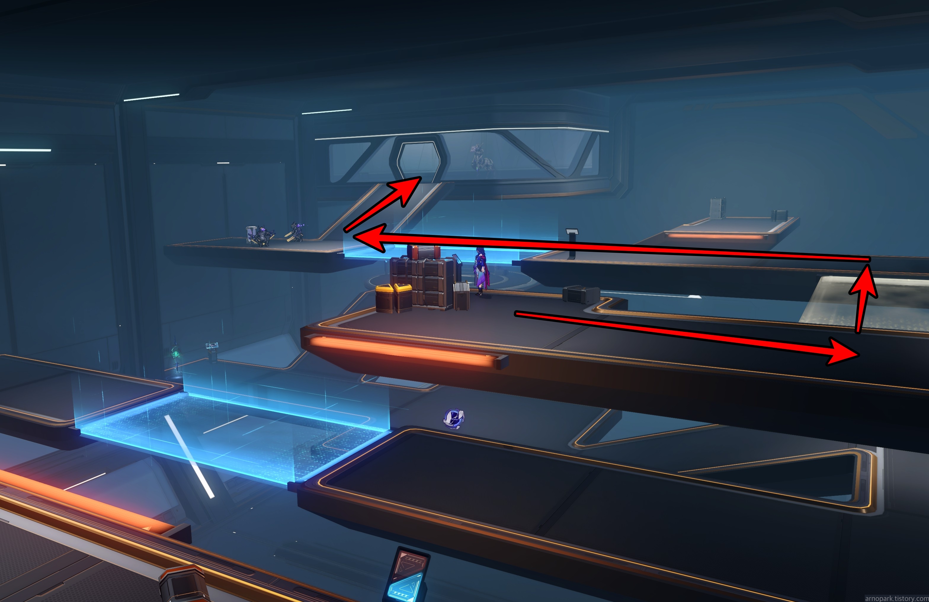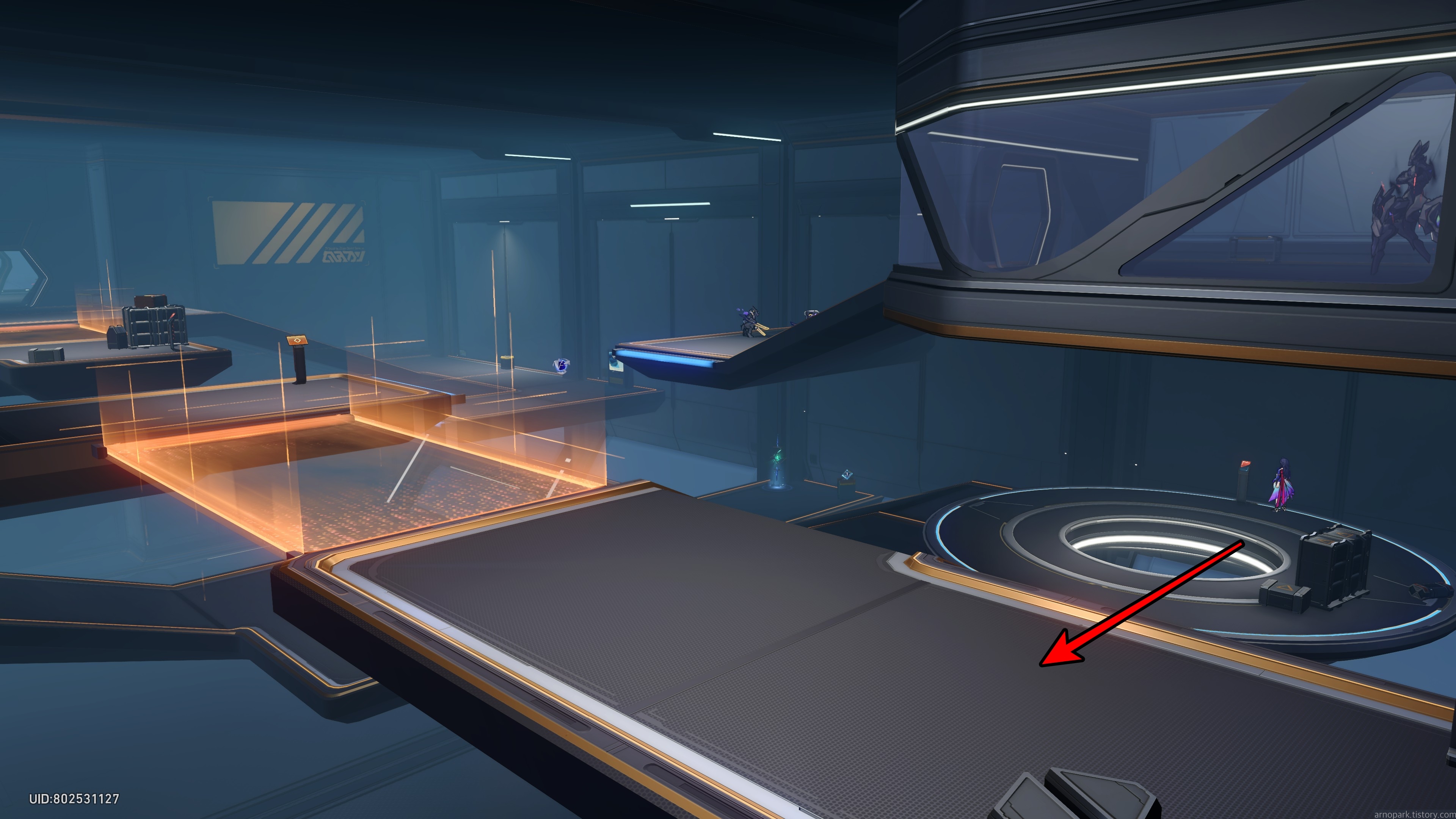 파란 다리를 활성화한 후, 사진의 화살표를 따라 이동합니다.